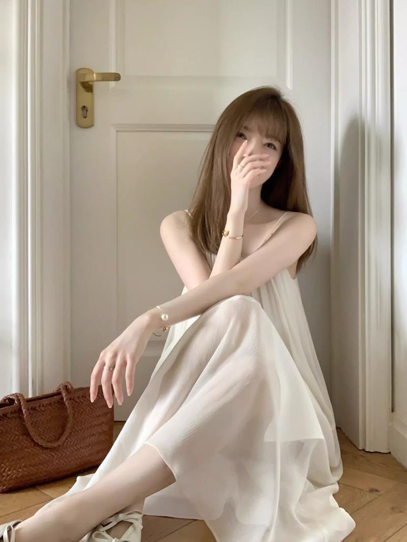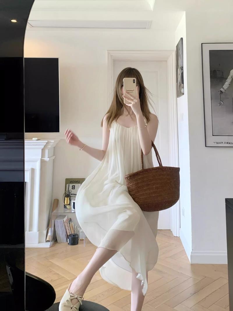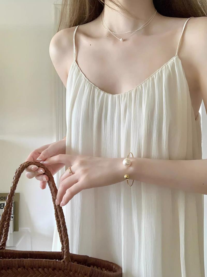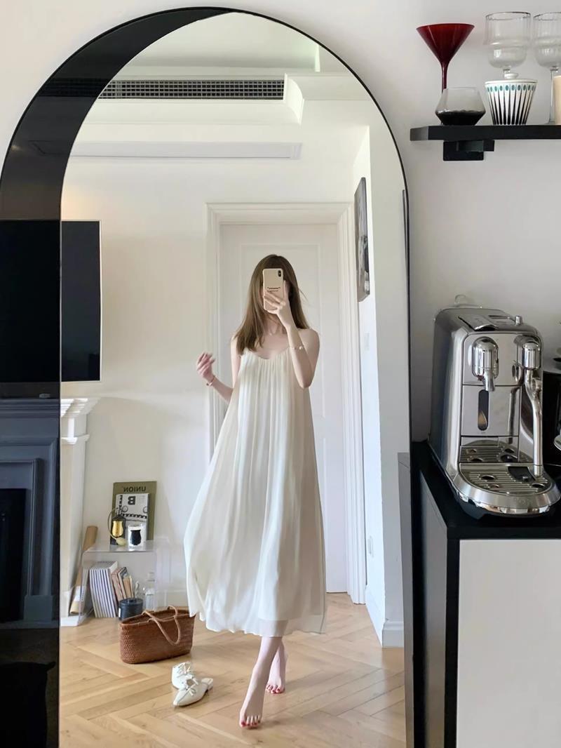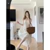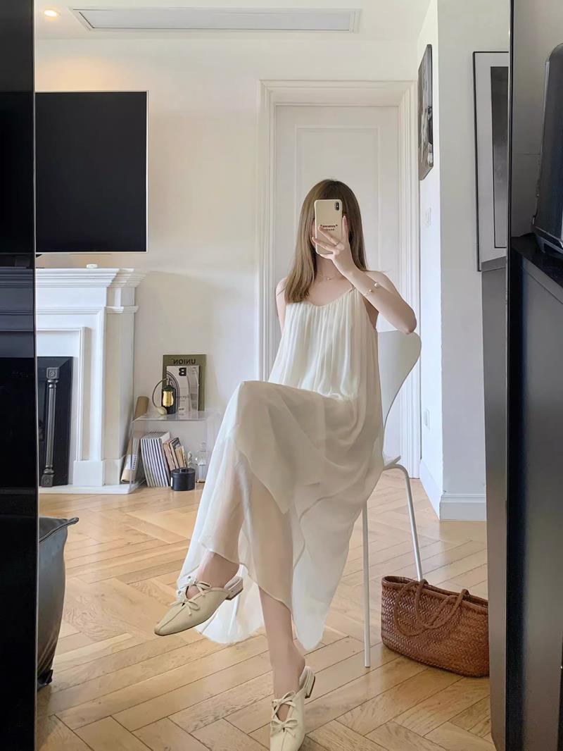 Camisola de Malha com Suspensório para Mulheres 2023 Vestido de Primavera e Outono com Bojo Pijama Primavera e Outono Roupa de Casa para Mulheres Verão