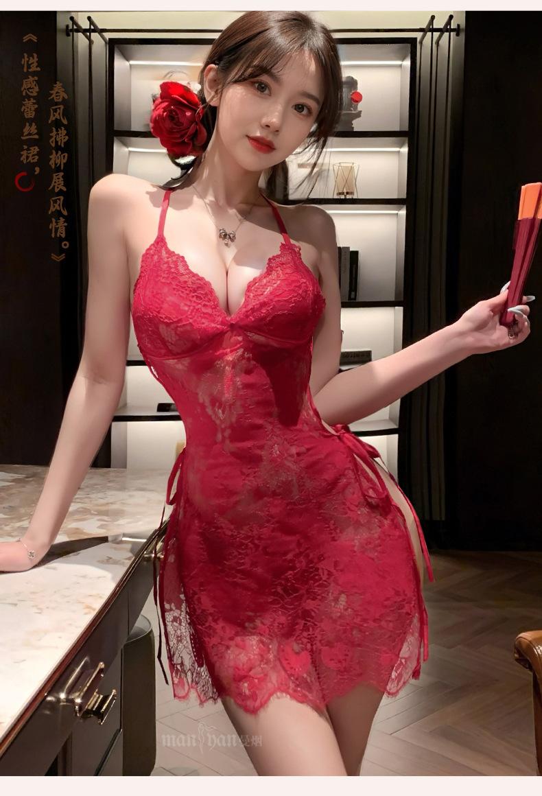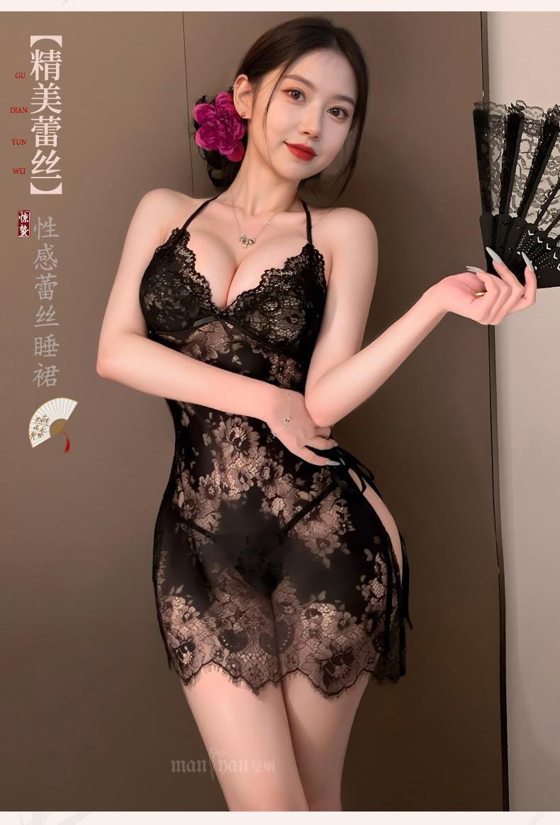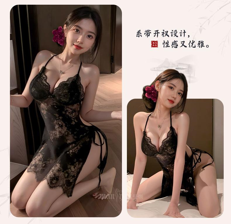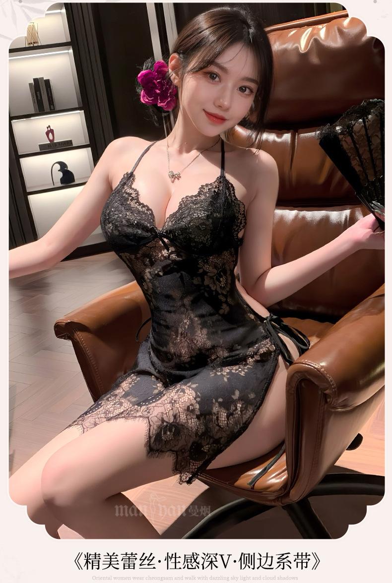 Lingerie Sexy Feminina Manyan Sexy Renda V Profundo Renda Costas Lindas Renda Transparente Fenda Liga Camisola Pijama 9105