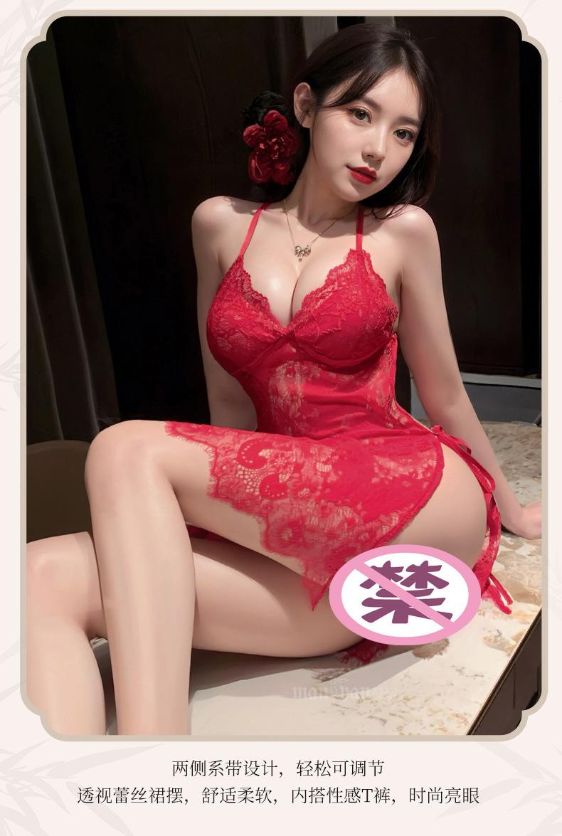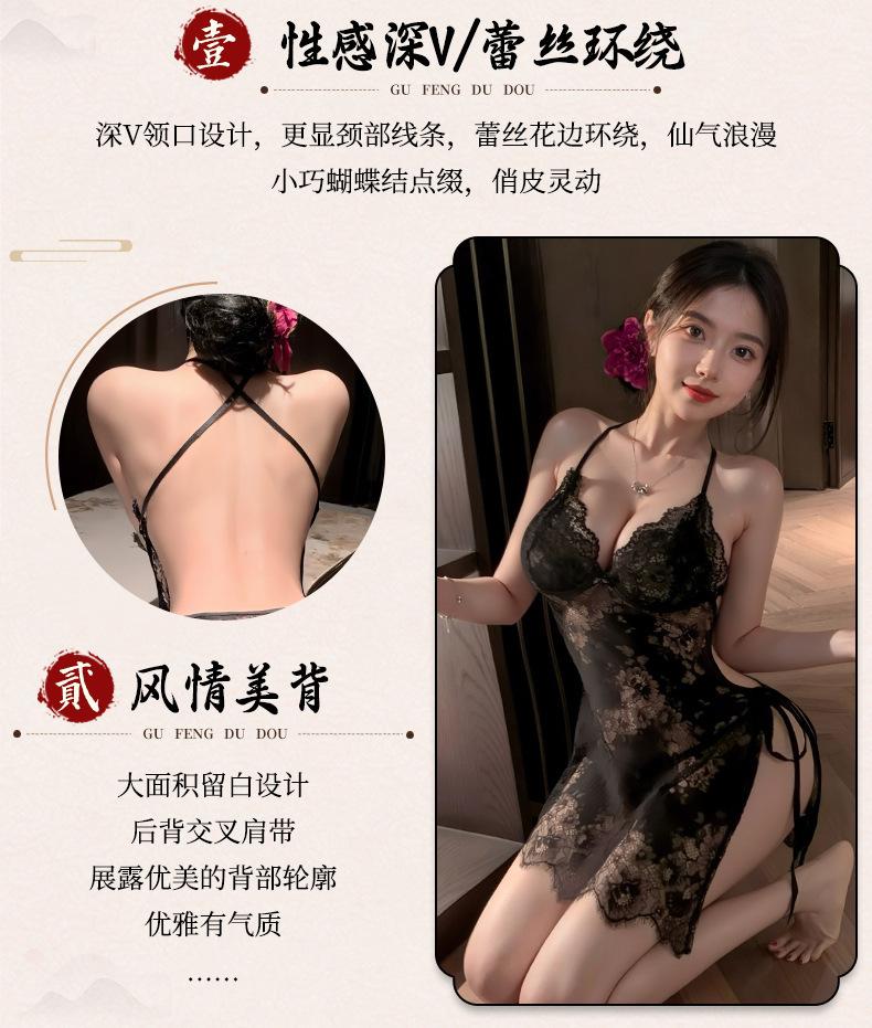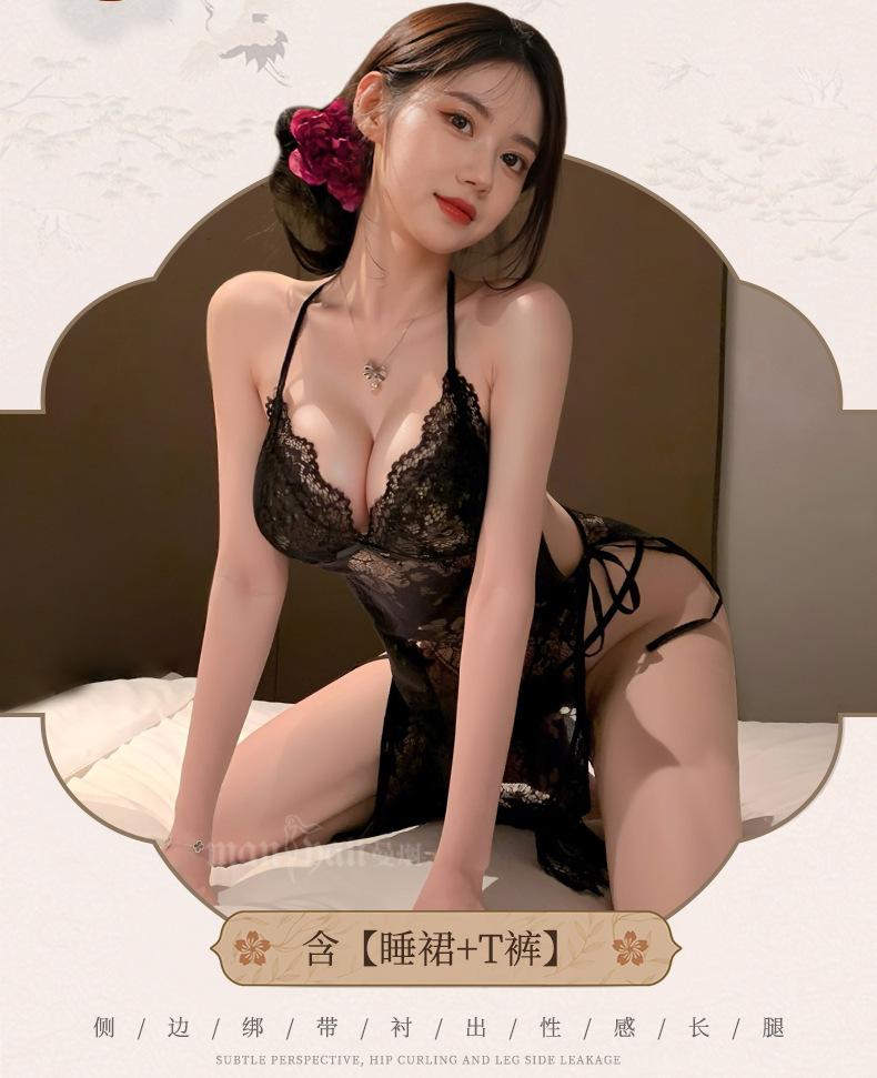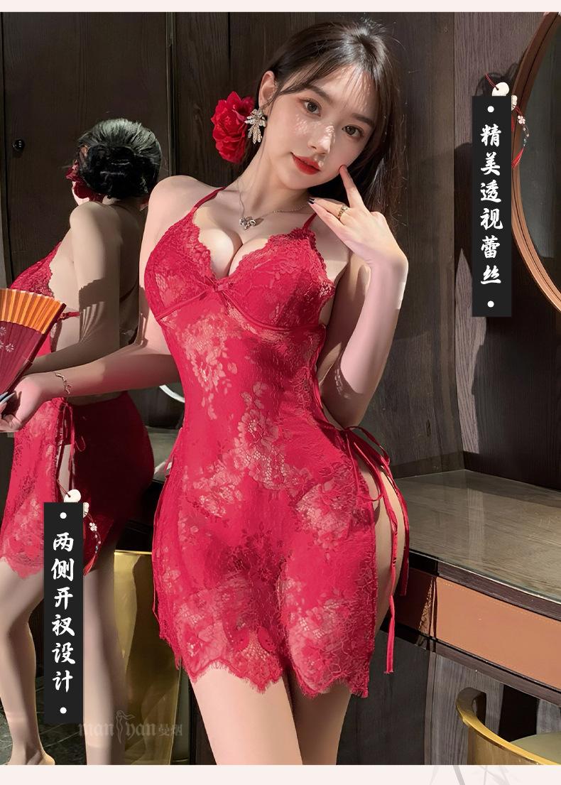 Lingerie Sexy Feminina Manyan Sexy Renda V Profundo Renda Costas Lindas Renda Transparente Fenda Liga Camisola Pijama 9105