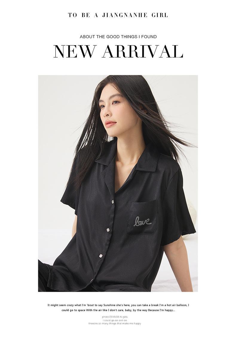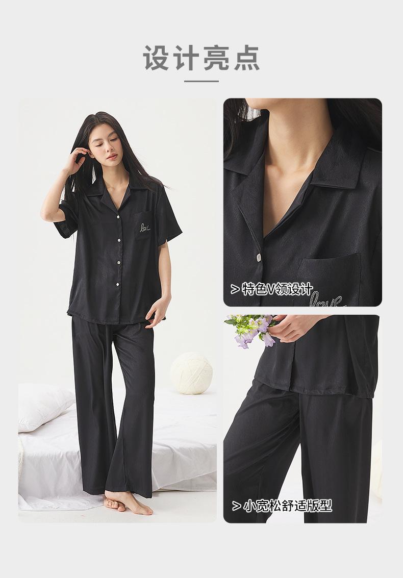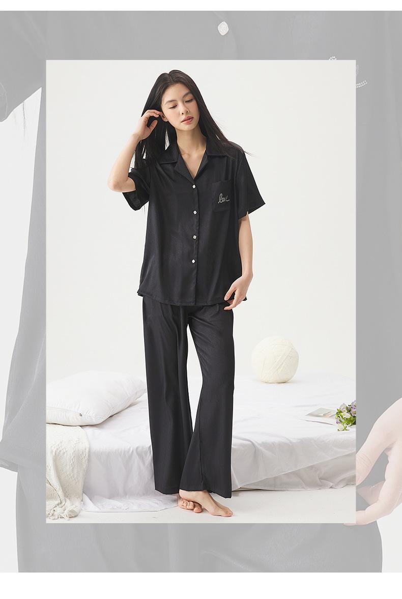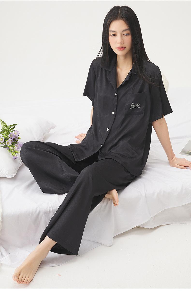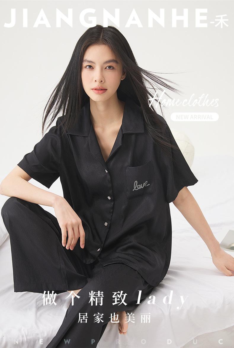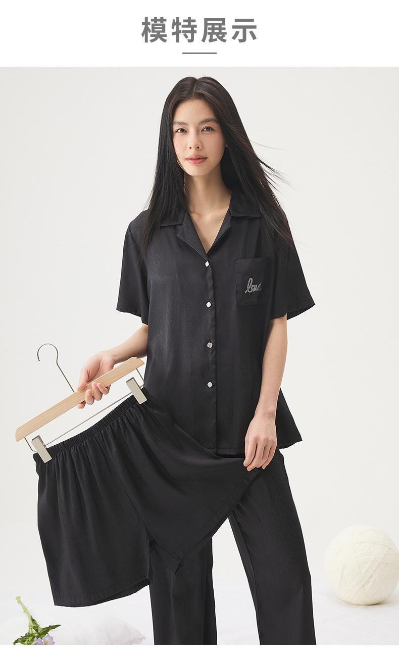 25 Pijamas de Primavera e Verão para Mulheres Seda Gelo Renda Preta Seda Gelo Shorts de Manga Curta e Calças Conjunto de Três Peças Roupa de Casa Conjunto de Três Peças