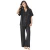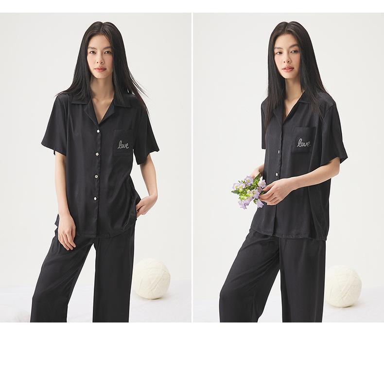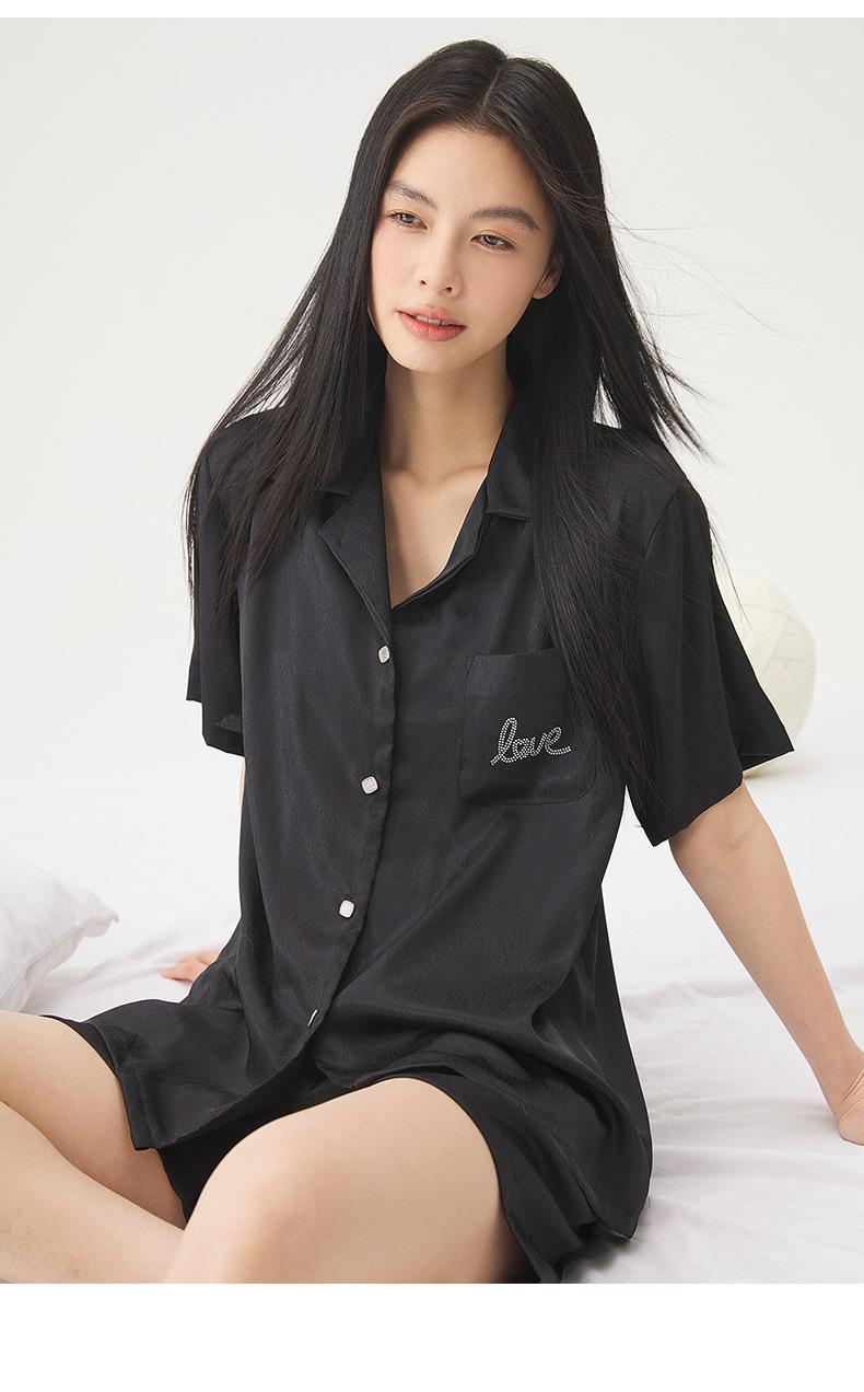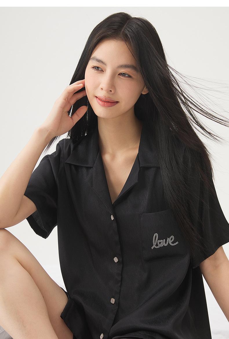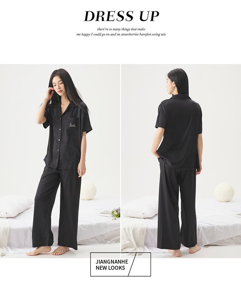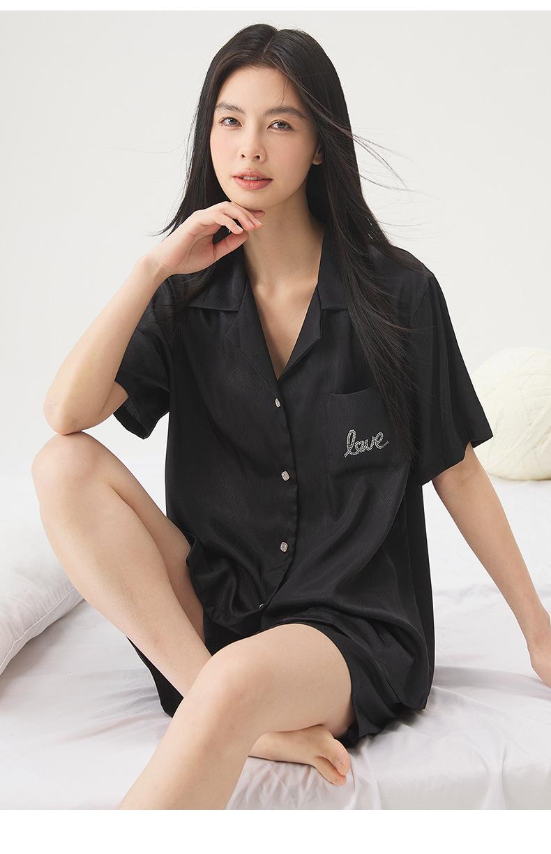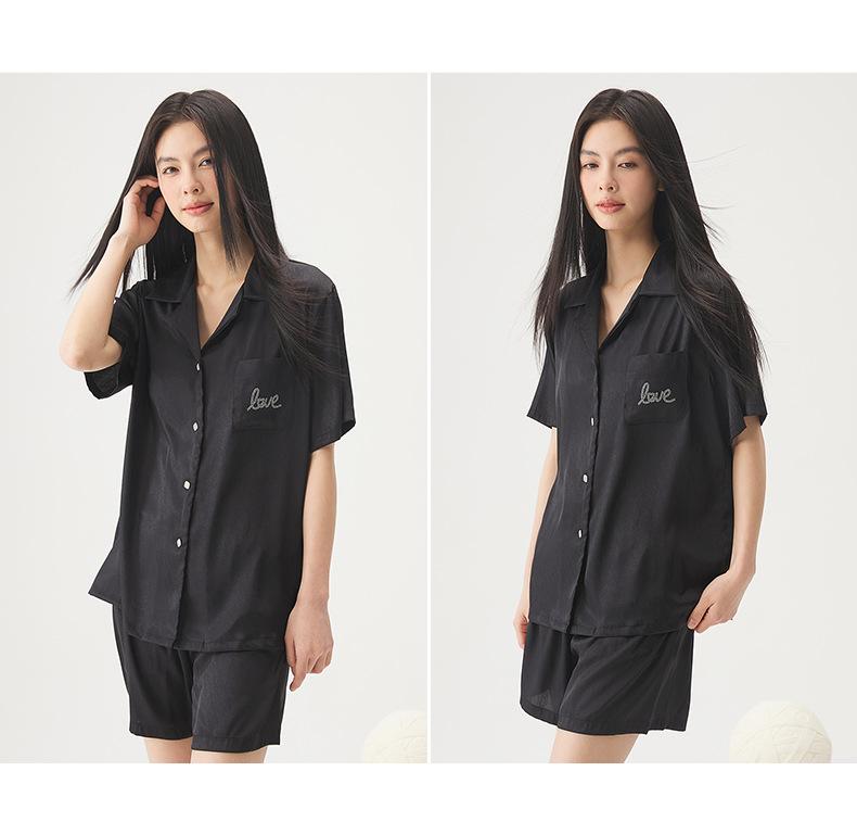 25 Pijamas de Primavera e Verão para Mulheres Seda Gelo Renda Preta Seda Gelo Shorts de Manga Curta e Calças Conjunto de Três Peças Roupa de Casa Conjunto de Três Peças