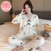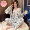 Fábrica em estoque tamanho grande Pijama Feminino Desenho Animado Biscoitos Urso Primavera e Outono Roupas de Casa Fofas para Menina Roupa Exterior Conjunto de Duas Peças