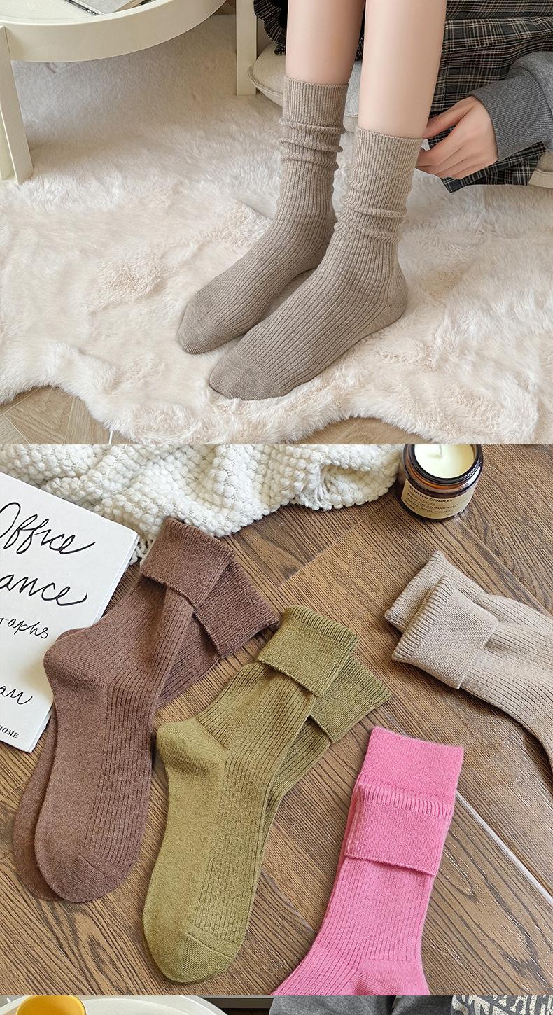 Cheng home meias de lã por atacado 6% meias ins vento femininas forradas com lã grossas quentes outono e inverno agulha dupla meias de cano de caxemira