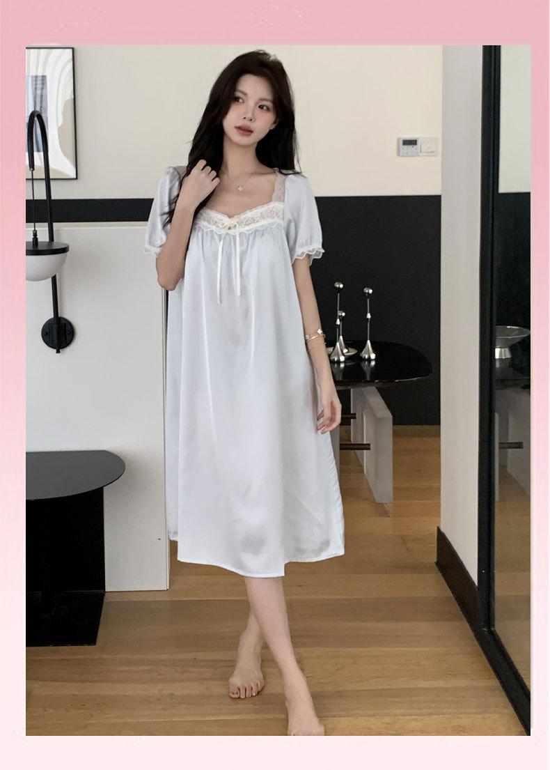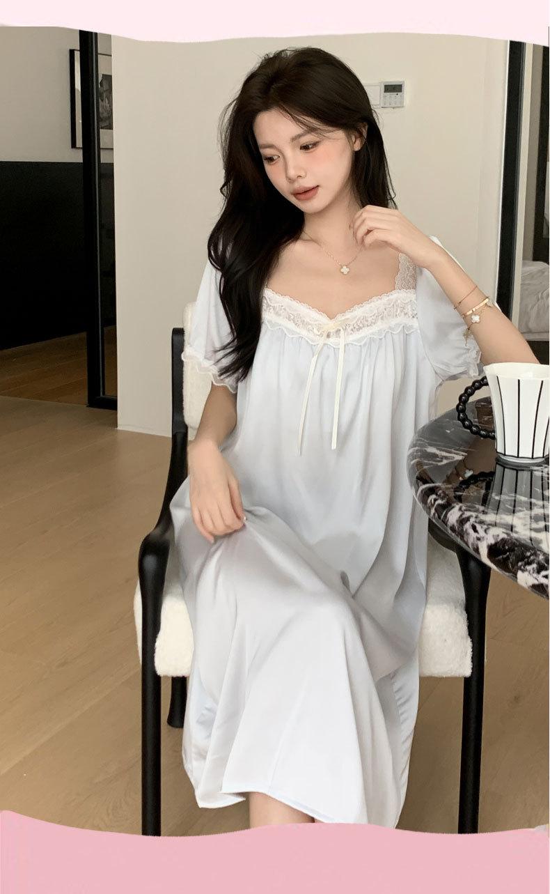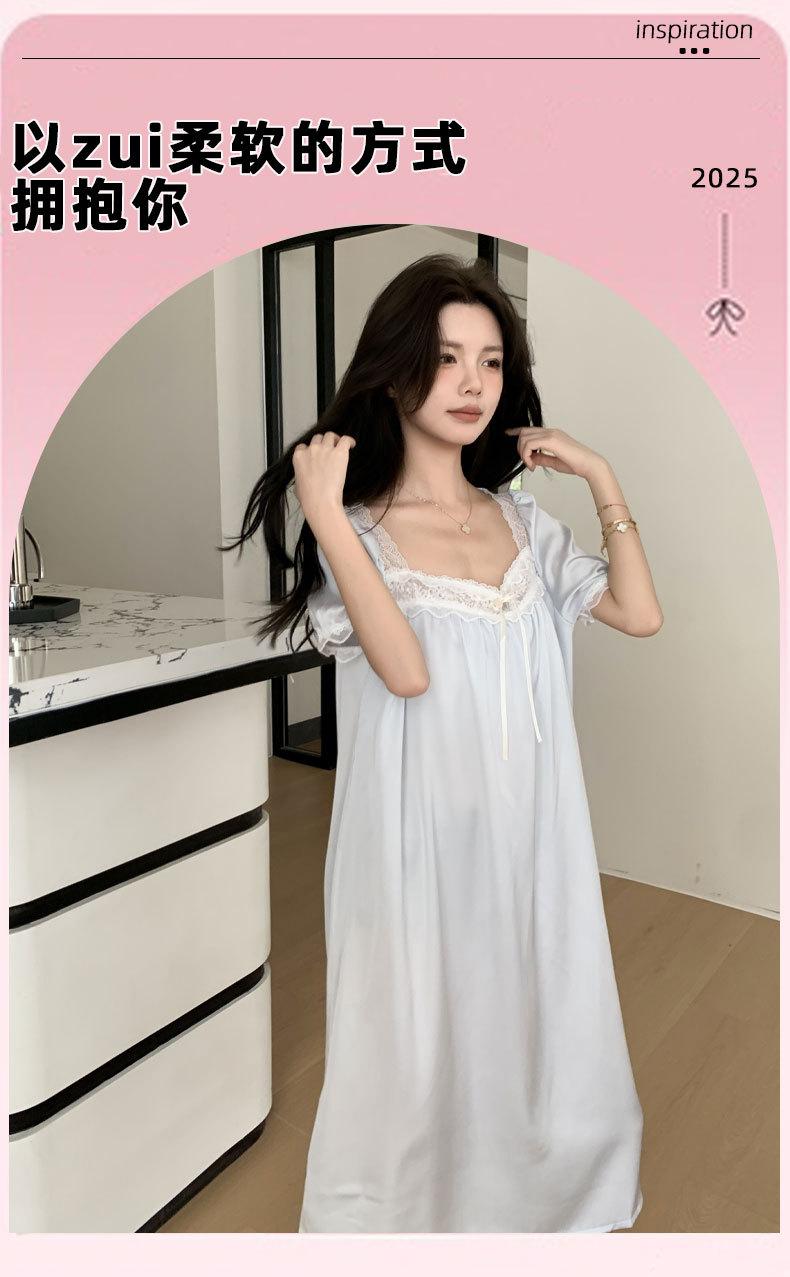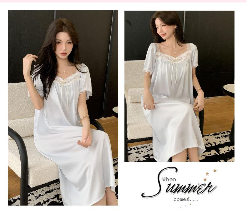 2025 Novo Pijama de Seda de Gelo Feminino Verão Simples Borda de Renda Casual de Alta Qualidade Fino Roupa de Dormir