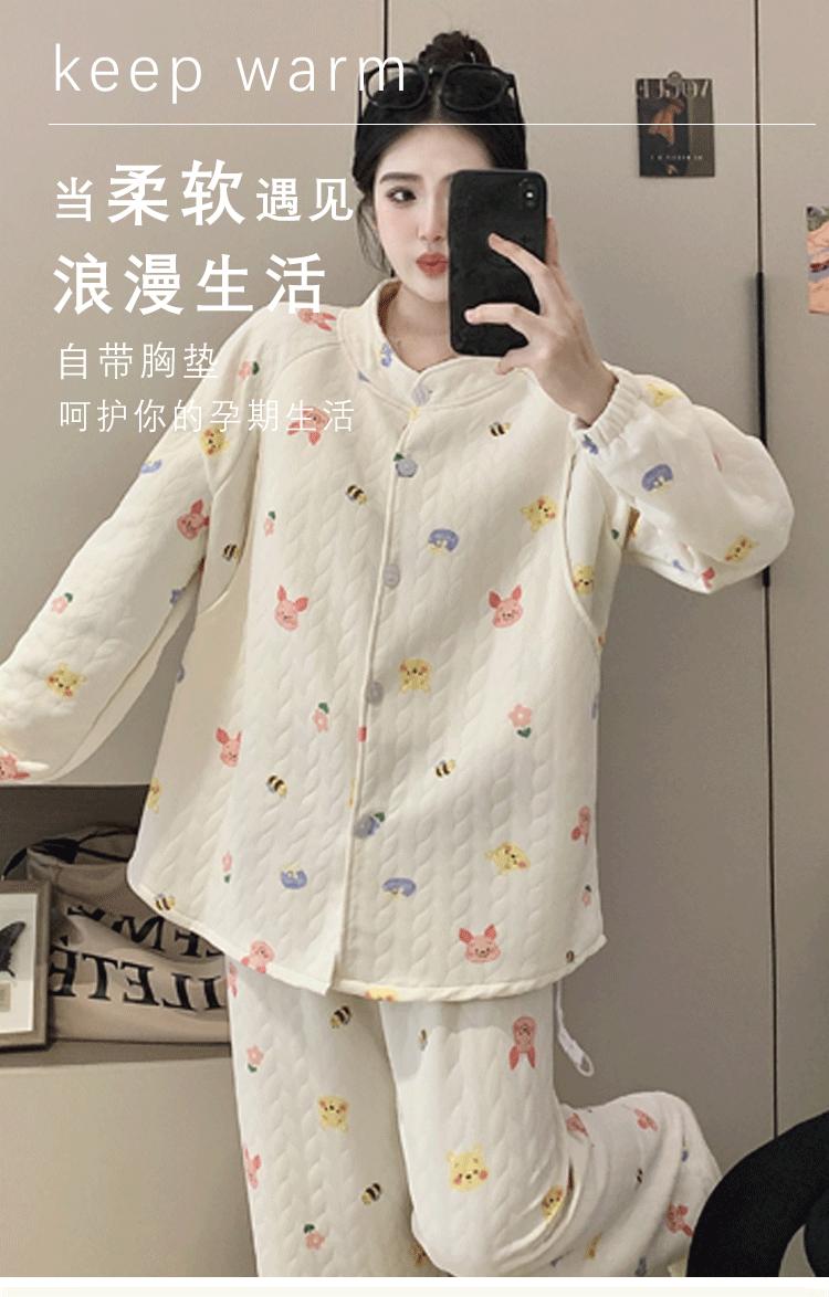 Roupas de Maternidade Novo Estilo Xi Yue 2025 Algodão Aerado com Bojos Pijama Pós-parto Outono Inverno Mulheres Grávidas Roupas Quentes para Amamentação