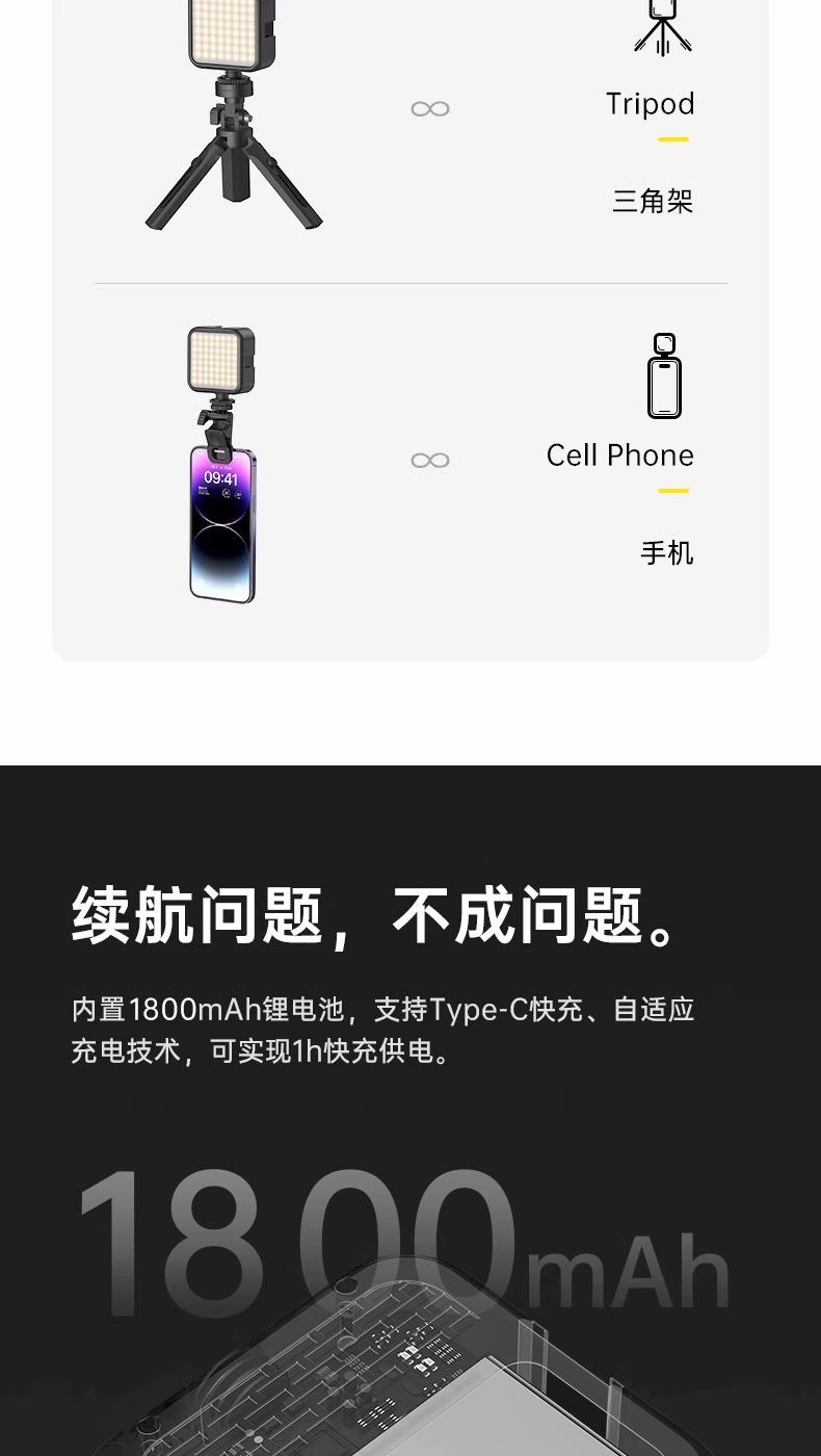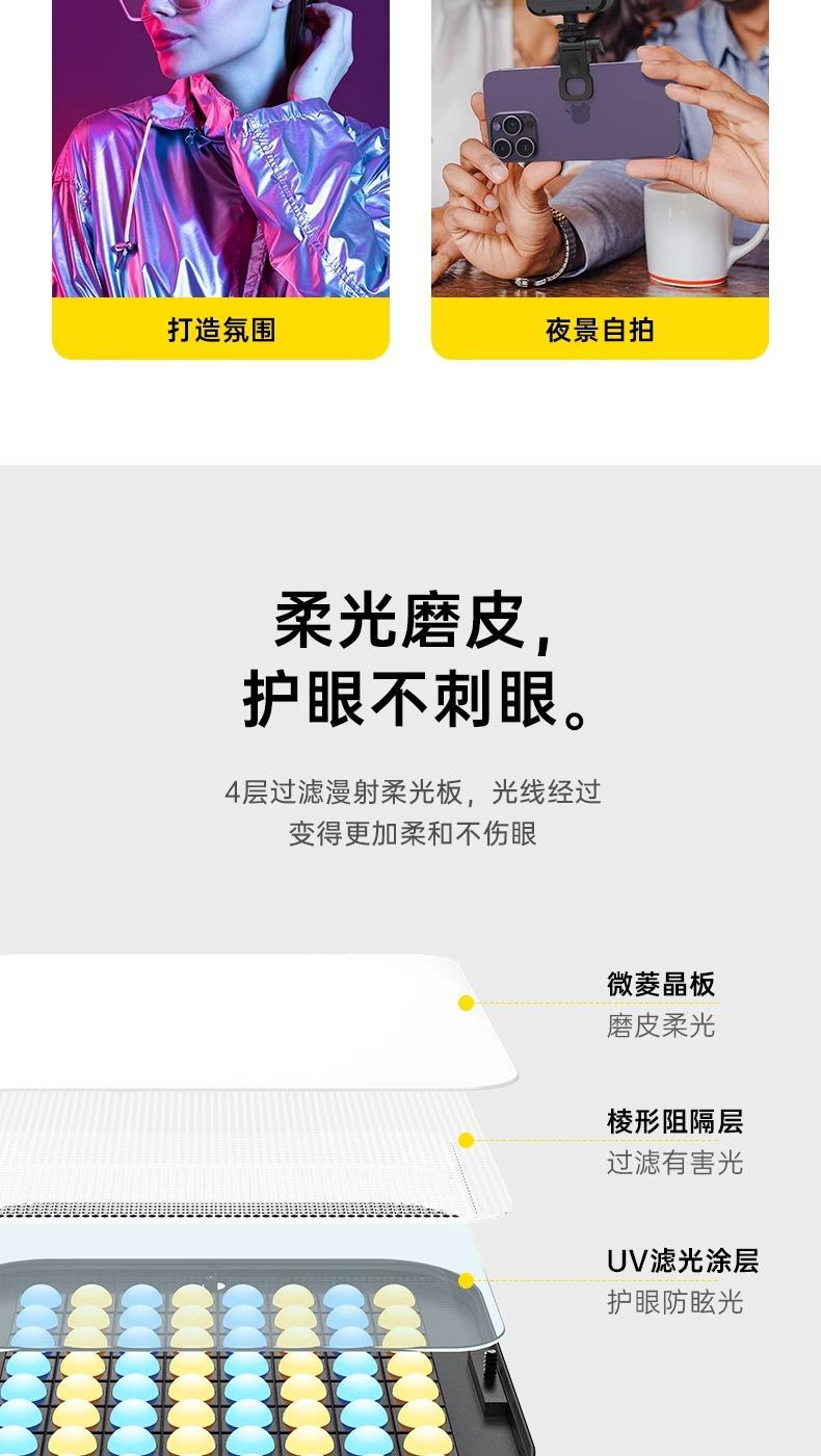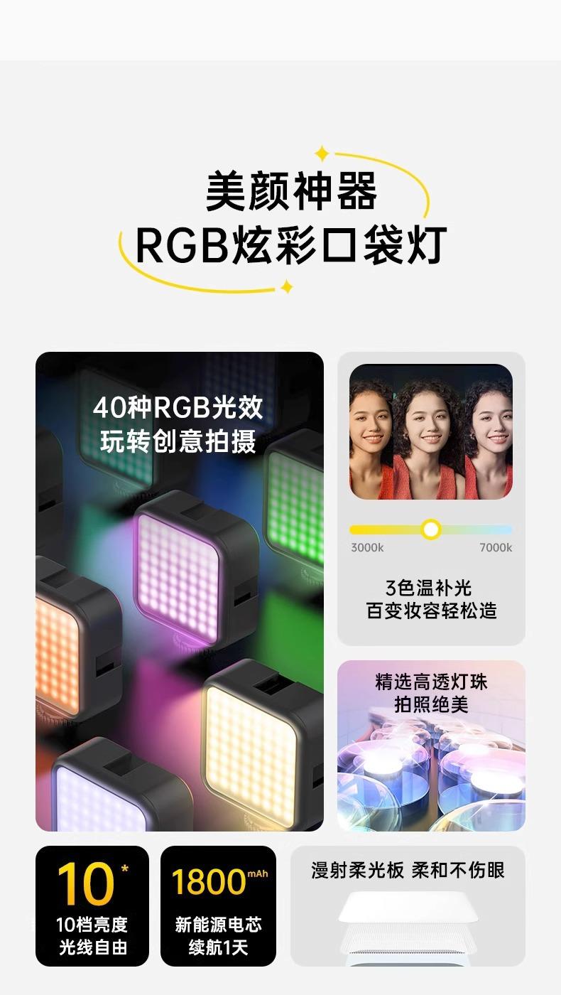Haoyuebai [rgb full color + three color temperatures] 40 light effects| With mobile phone holder丨outdoor portable