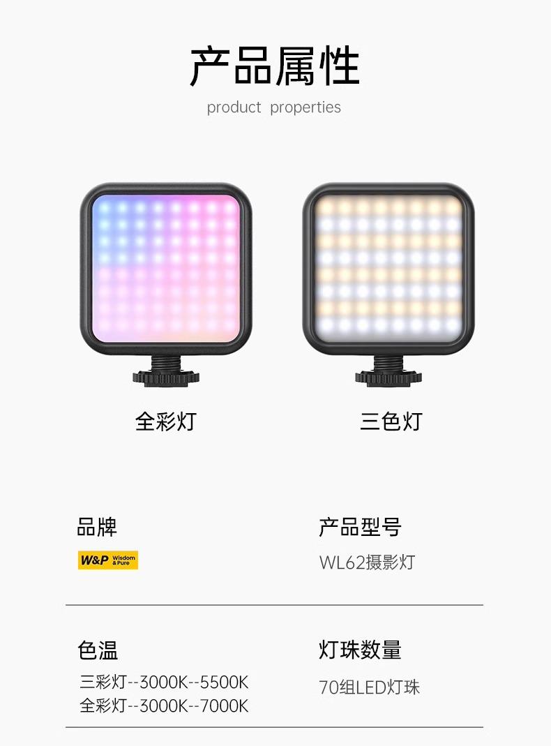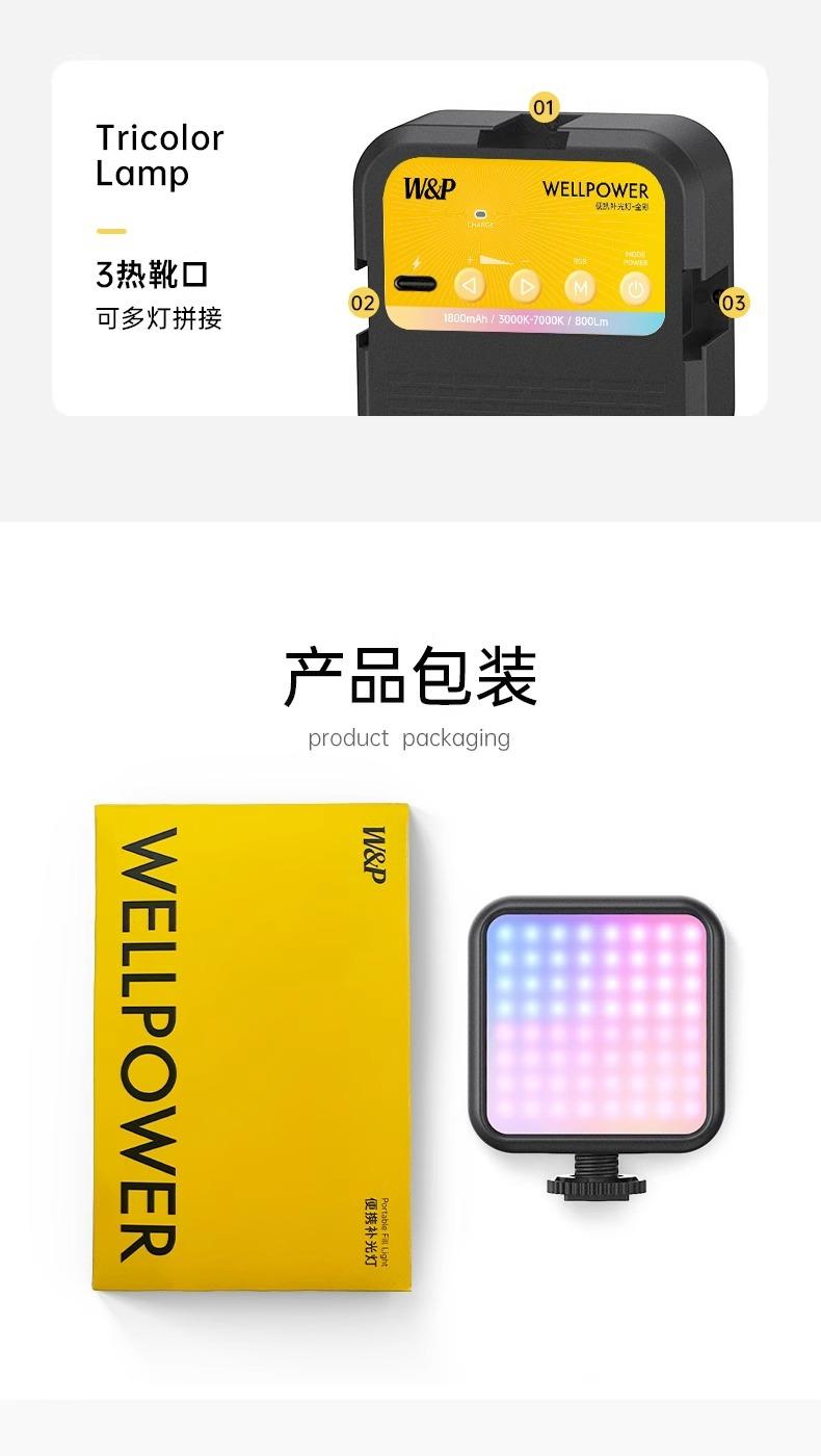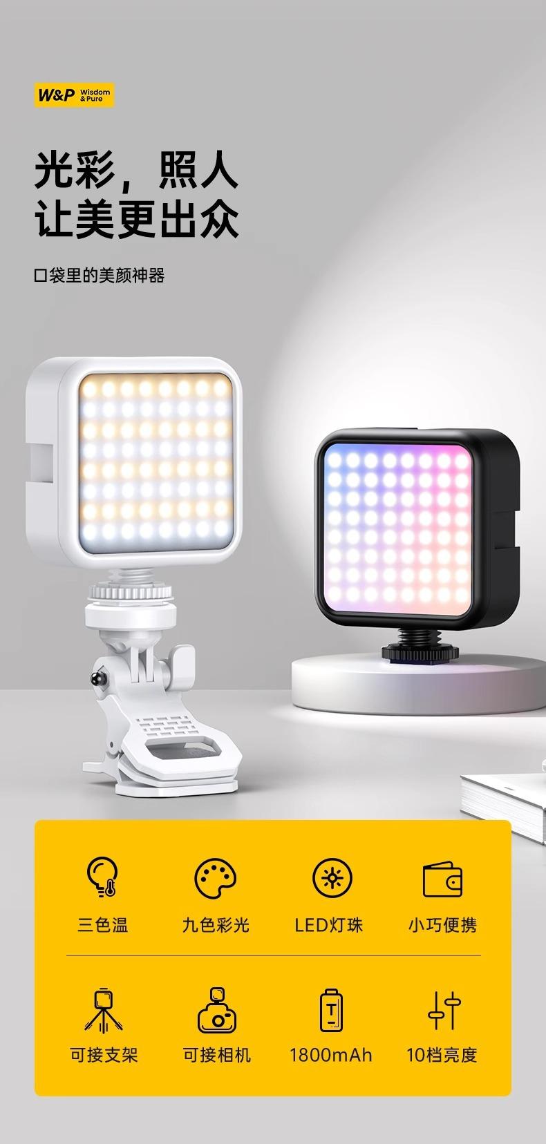 Luz de Preenchimento para Celular W&P Portátil Colorida RGB Luz de Fotografia LED Colorida Foto Cabelo Câmera SLR Câmera