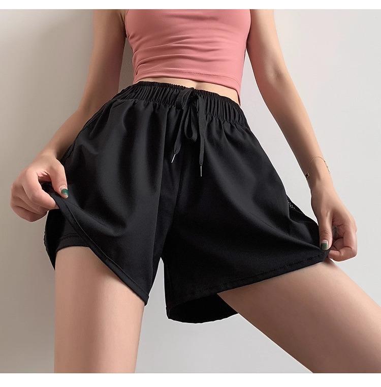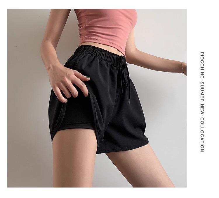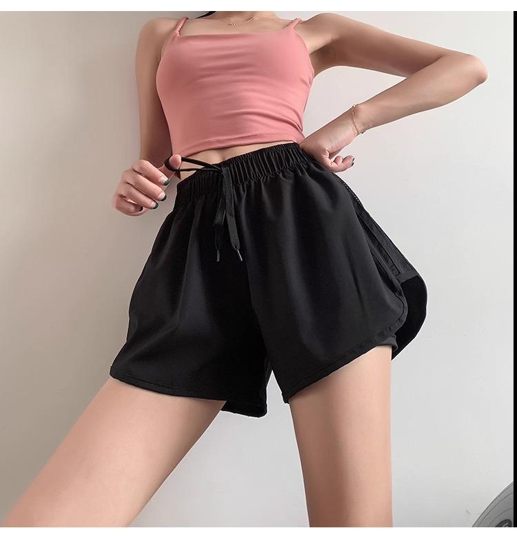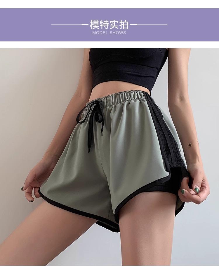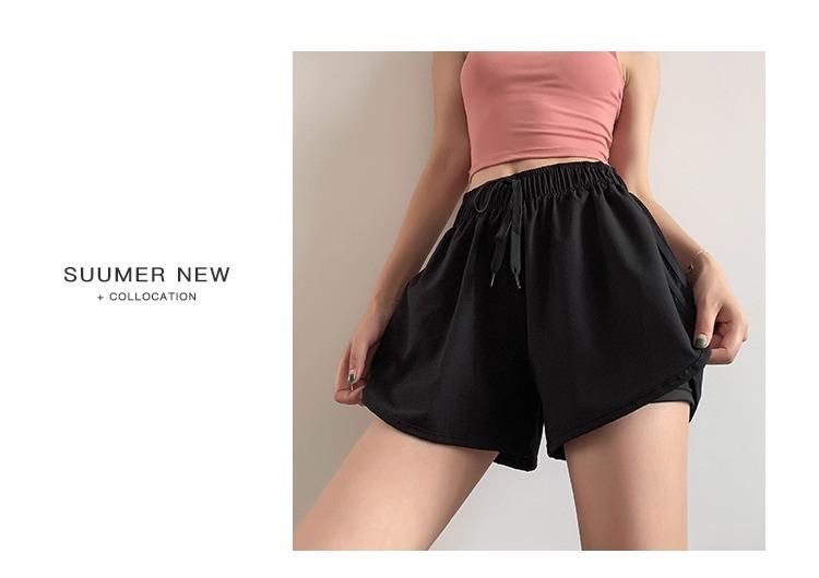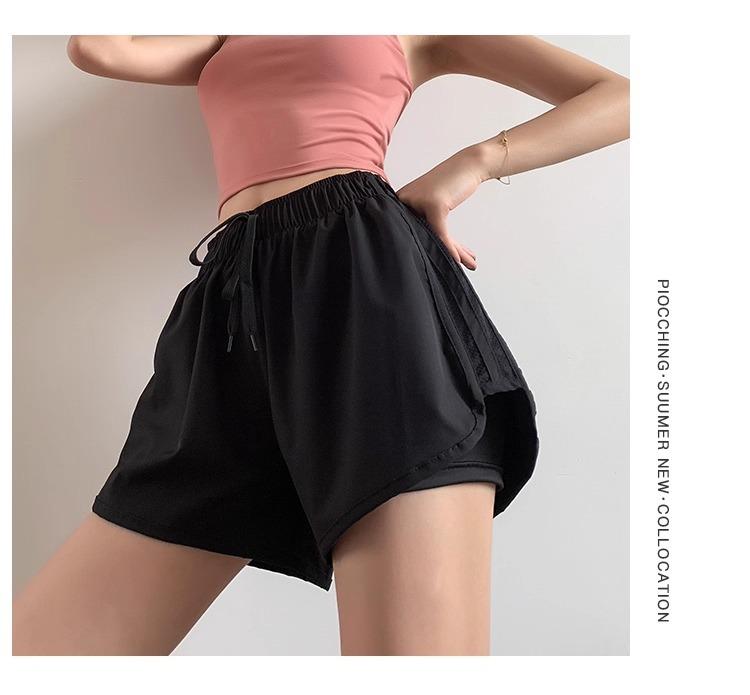Shorts Esportivos Femininos Falsos de Duas Peças Anti-Exposição para o Verão Finos de Secagem Rápida Largos Respiráveis para Corrida ao Ar Livre Fitness Ioga