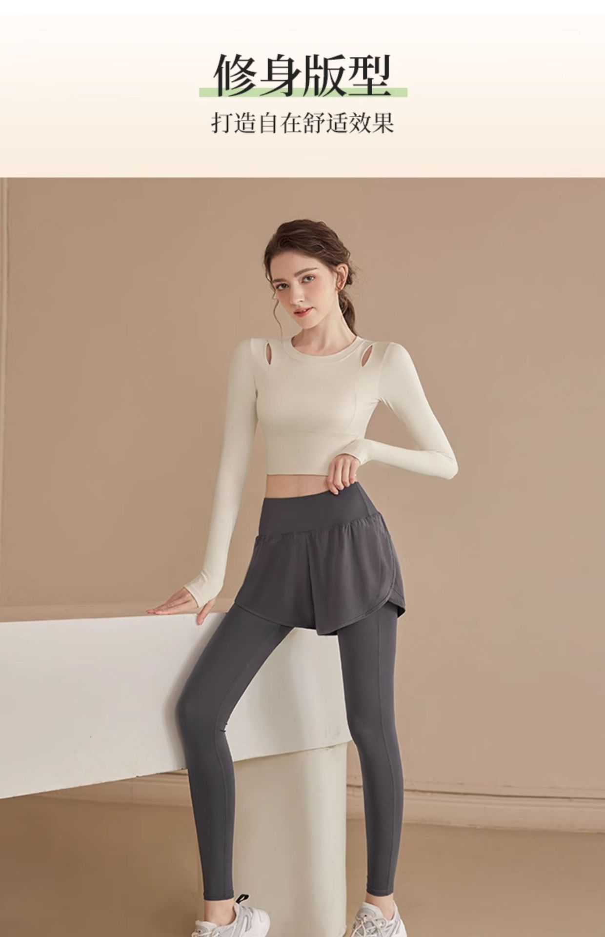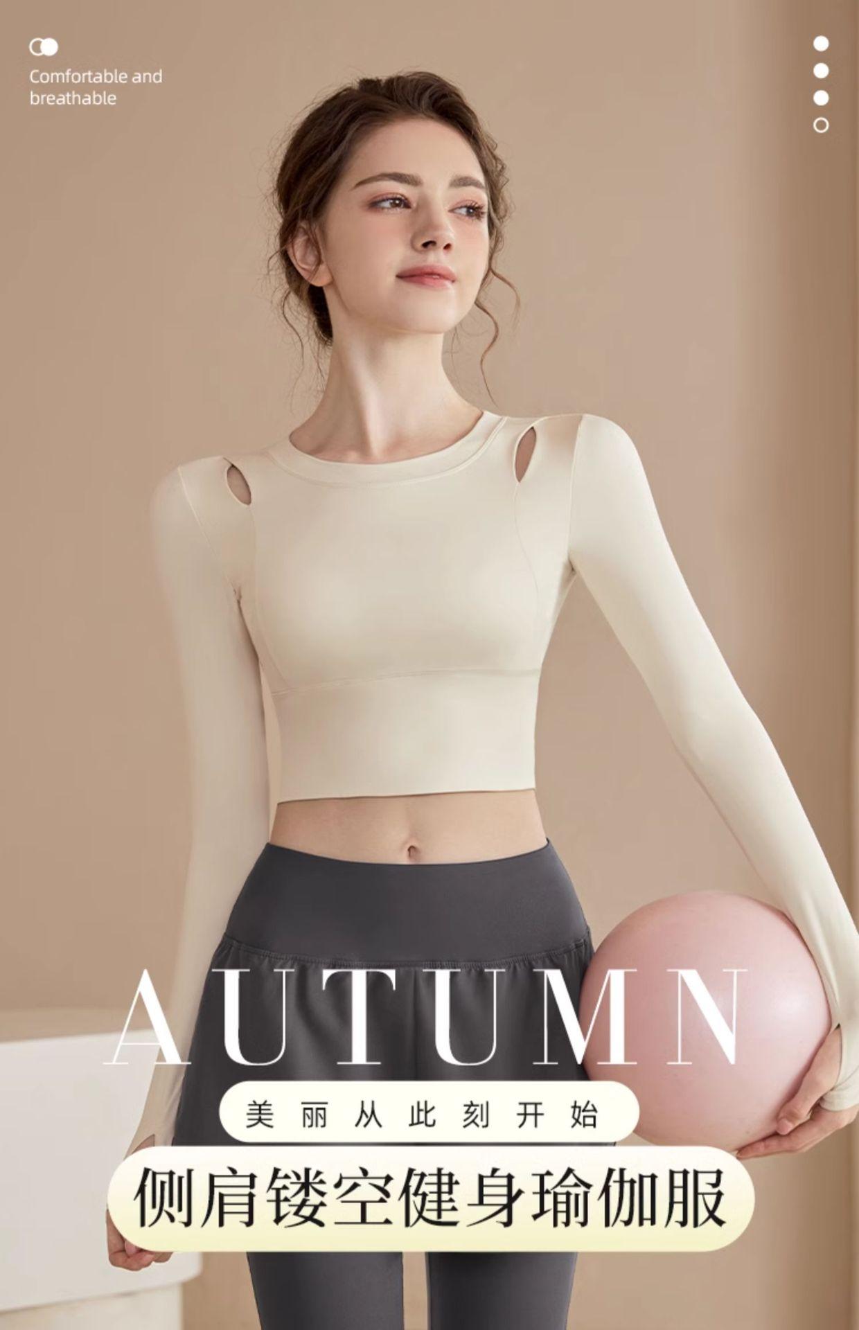 Roupa de ioga feminina outono e inverno nova respirável slim roupa de fitness top esportivo manga longa roupa de treino terno feminino atacado