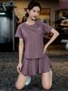 Treinamento de Pilates Yoga Roupa Fitness para Mulheres Tamanho Grande Meninas Gordas Esportes Corrida Matinal Conjunto de Saia Solta de Secagem Rápida com Manga Curta