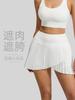 Saia Plissada Fenda Falsa Duas Peças Yoga Cintura Alta Antiexposição Saia de Tênis com Bolsos Camada Dupla Antideslizante Cor Sólida Saia Curta