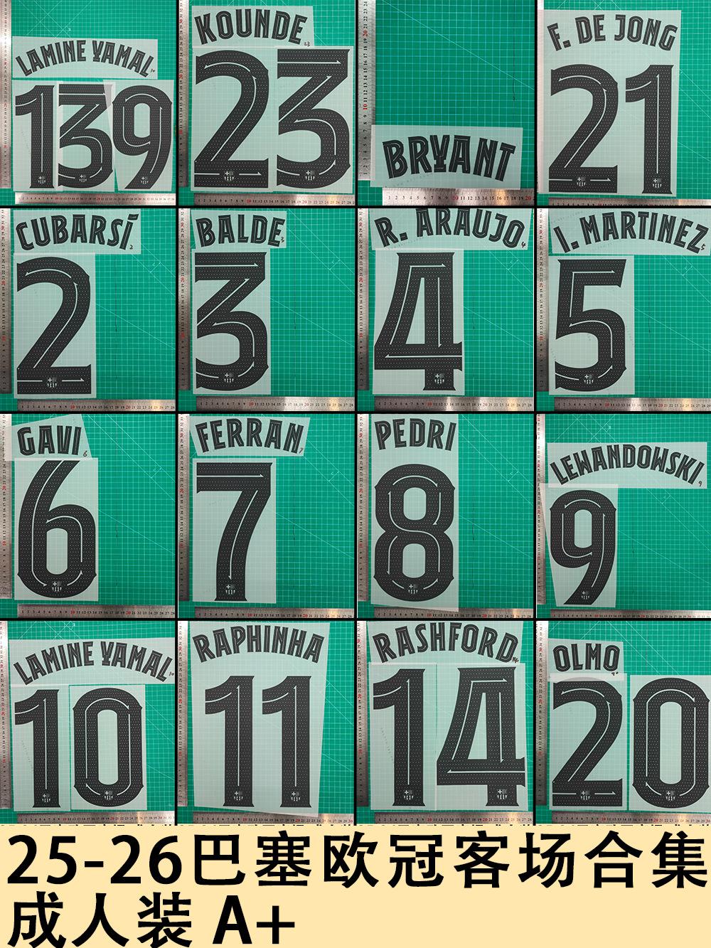 25-26 Barcelona Champions League Away Adult A+ #BRYANT, 25-26 Barcelona Champions League Away Adult A+ 2#CUBAR...