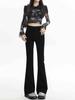 Jeans Flare Preto para Mulheres, Primavera e Outono 2025 Novo Cintura Alta Modelador Elástico Flare Bootcut