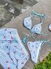 Novo Biquíni de Três Peças Xadrez Azul Cereja Estilo Doce Menina Japonesa Seios Pequenos Sexy Maiô de Duas Peças + Shorts de Praia