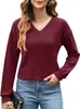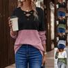 Comércio Exterior Transfronteiriço Europa e América Amazon Outono e Inverno Novo Decote V Cor Sólida Sexy Casual Slim Top Camiseta Manga Longa Roupa Feminina
