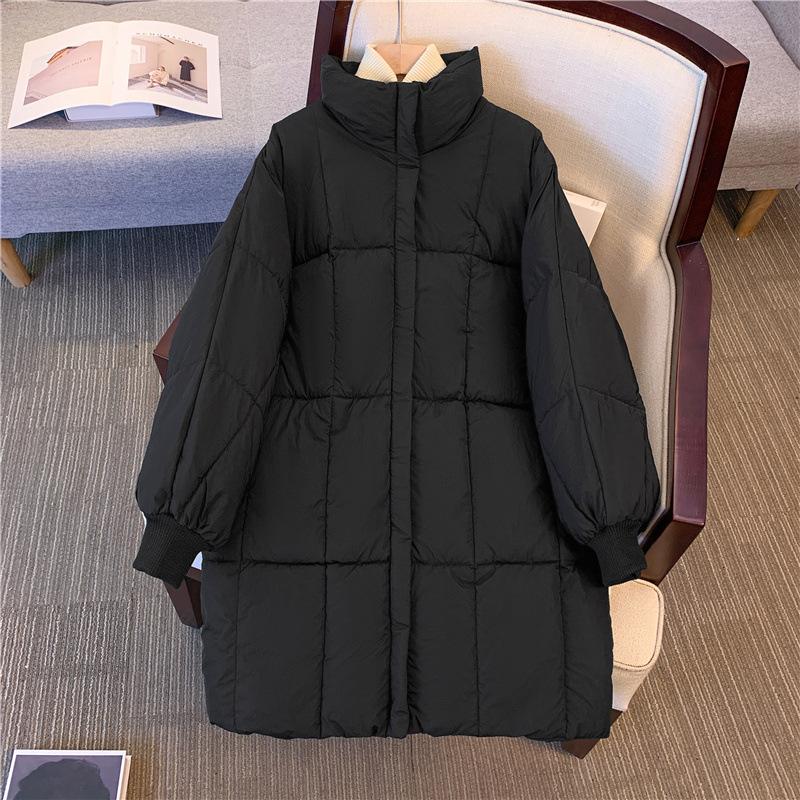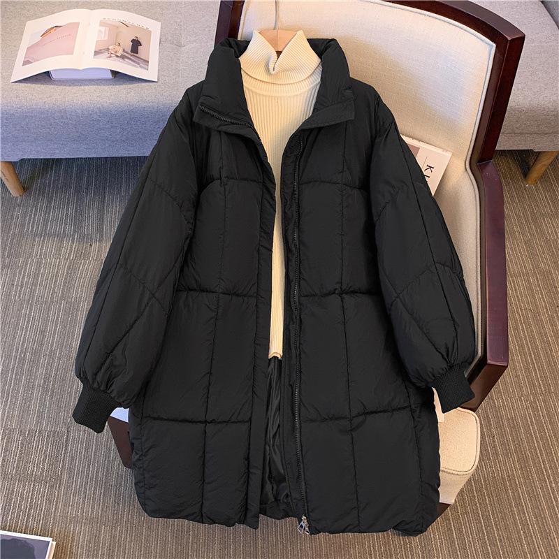2025 Novo Casaco de Algodão Feminino de Inverno Estilo Coreano Médio, Solto e Moderno Casaco de Algodão Acima do Joelho