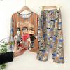 Pijama de Menino Infantil Primavera e Outono Fina Manga Curta Calças Roupa de Casa Infantil Verão Meninas Meninos Roupa de Exterior