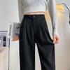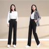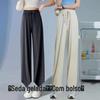2024 Novo Estilo Calças de Chiffon Drapeadas de Nove Pontos de Perna Larga para Mulheres Verão Cintura Alta Soltas Finas Retas Slim Calças de Oito Pontos