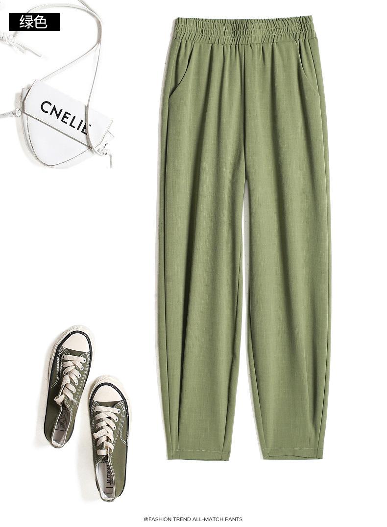 Calças de Moletom Harém Novas de Primavera e Verão Calças Femininas Look Emagrecedor Calças Banana Nove Pontos Pequenas Cintura Alta Tamanho Grande Calças Casuais Calças Cenoura