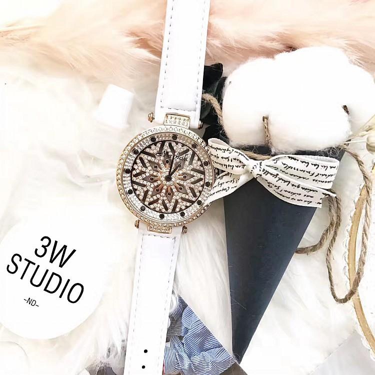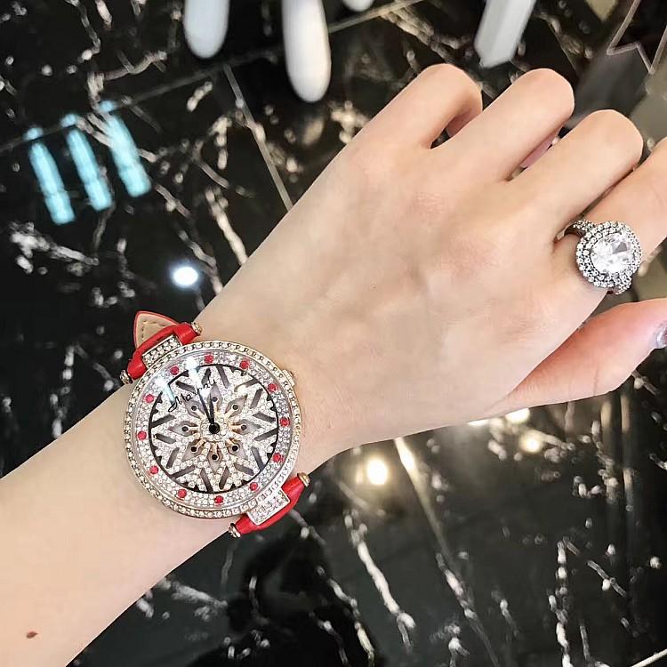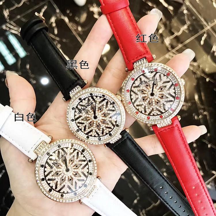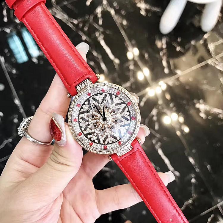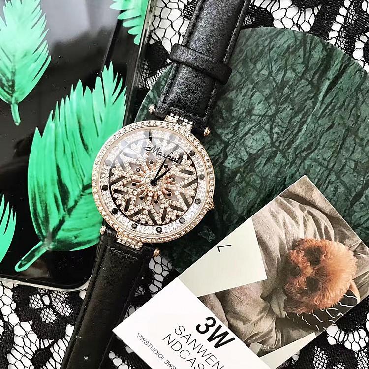 O Novo Relógio Feminino de Moda da Masalie com Personalidade Diamante Floco de Neve e Pulseira de Couro