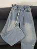 Jeans American Street com Cintura Elástica Masculino Marca Moderna Solto High Street Calças Retas Verão Casual Calças de Perna Larga Roupa Masculina
