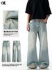 Jeans Retrô Americano 11Kn Azul Lavado Reto para Homens e Mulheres Cleanfit Solto Emagrecedor Perna Larga Calças Casuais