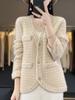 2025 Novo Cardigã de Tricô de Lã Pura Gola Redonda Feminino Bloco de Cores Solto Manga Longa Temperamento Casual Casaco de Botão Simples