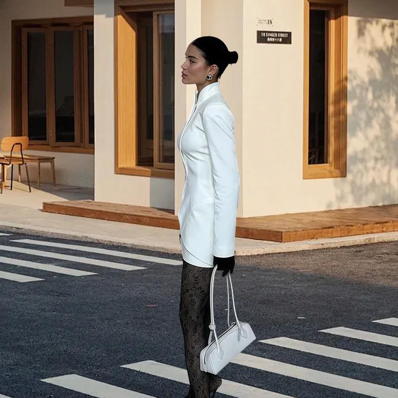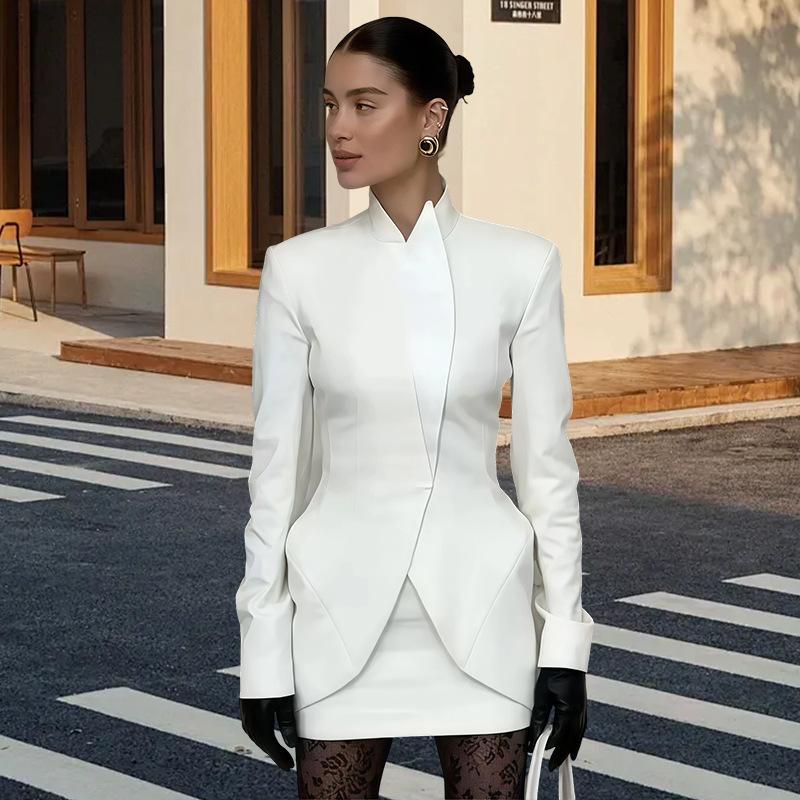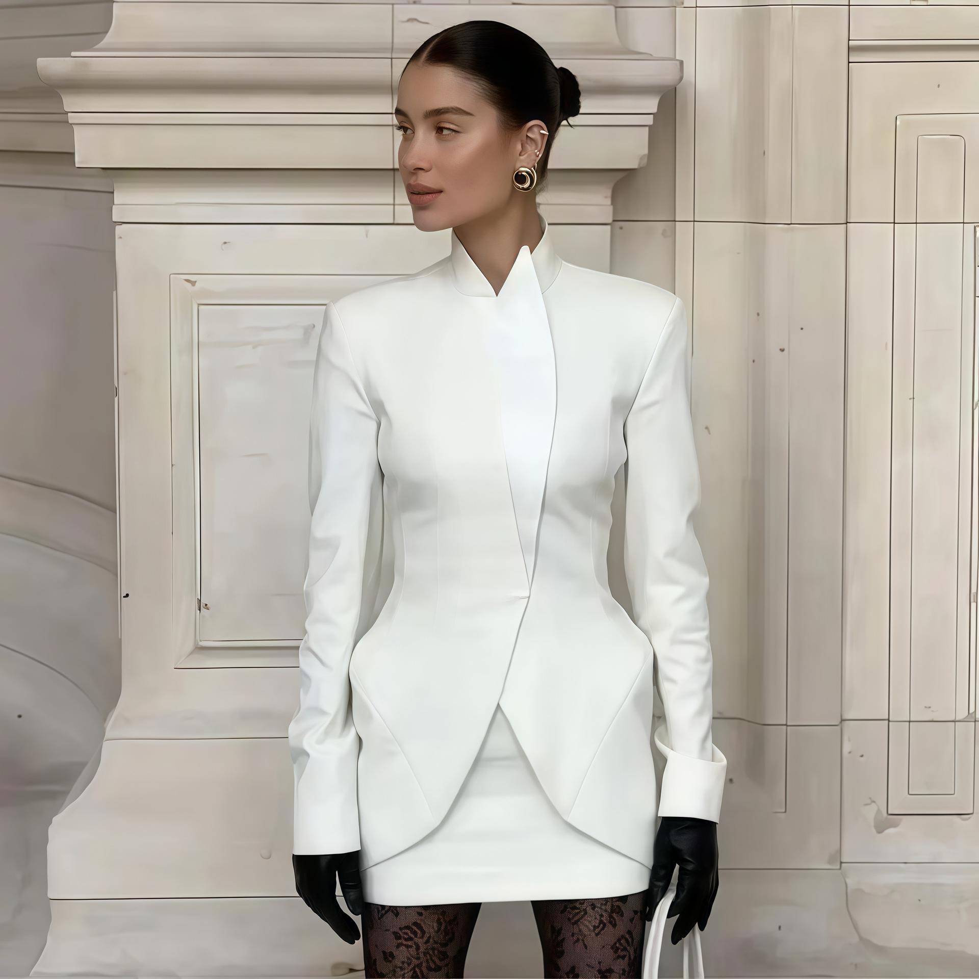 Europeu e Americano Transfronteiriço 2025 Moda Branco Terno Individual Feminino de Alta Qualidade Top Branco + Saia