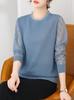 Nova Camiseta de Manga Longa para Primavera e Outono para Mulheres, Elegante e Estilosa, Blusa Base com Patchwork da Moda, Blusa de Tricô Fina para Mulheres
