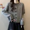 Compre Novos Tops Suéteres Primavera e Outono 2025 Design Feminino Bloco de Cores Botão de Coração Cardigan de Tricô Top de Manga Curta Longa no atacado no Joom.pro
