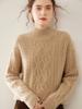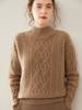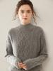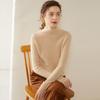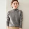 Blusa feminina de caxemira tricotada simples e versátil, gola alta, suéter solto e justo quente com cor sólida espessa
