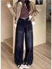 Jeans Pretos de Cintura Alta e Perna Larga para Mulheres, Nova Moda Tendência Retrô Solto Emagrecedor Calças Retas Versátil