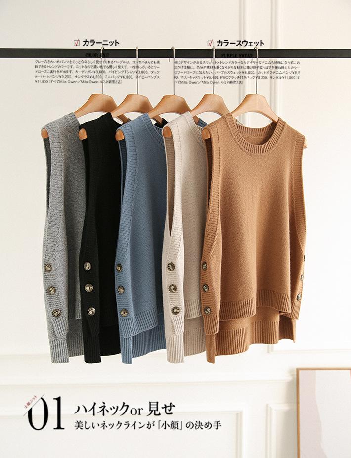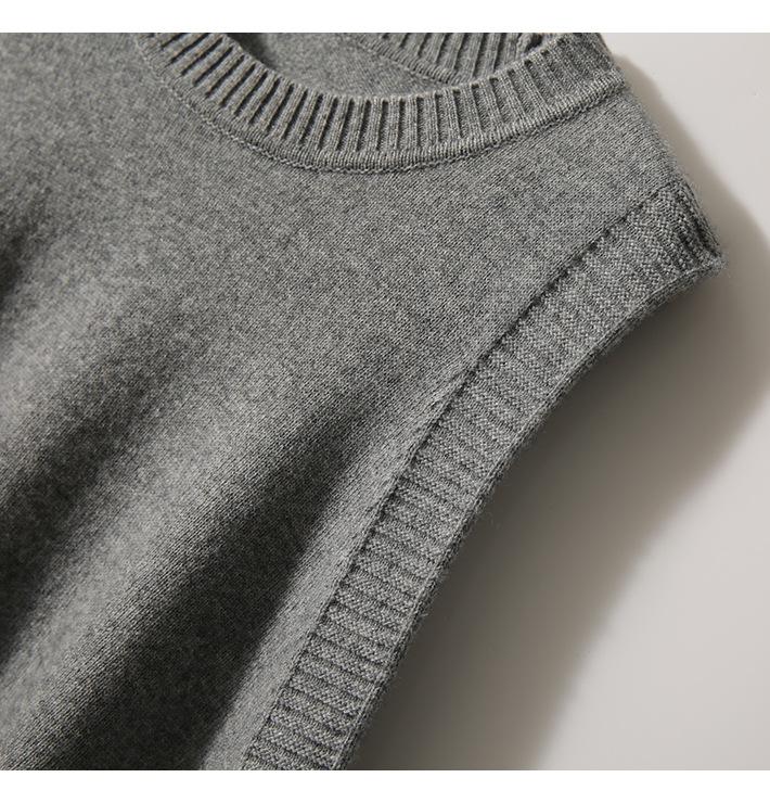 Sobretudo solto de gola redonda, colete, estilo literário, sobreposto, sem mangas, top de tricô, novo outono/inverno feminino