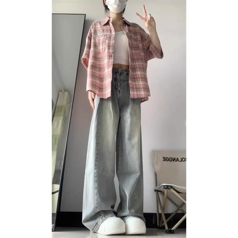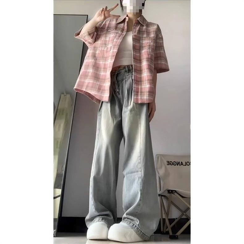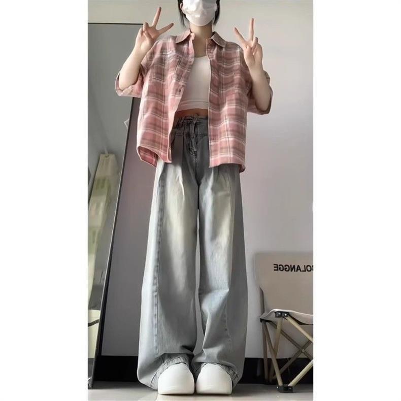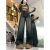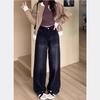 Jeans Largos Retrô Femininos de Perna Larga Longos Calças Primavera e Outono Design de Cintura Alta Emagrecedores High Street Perna Reta Novo Americano