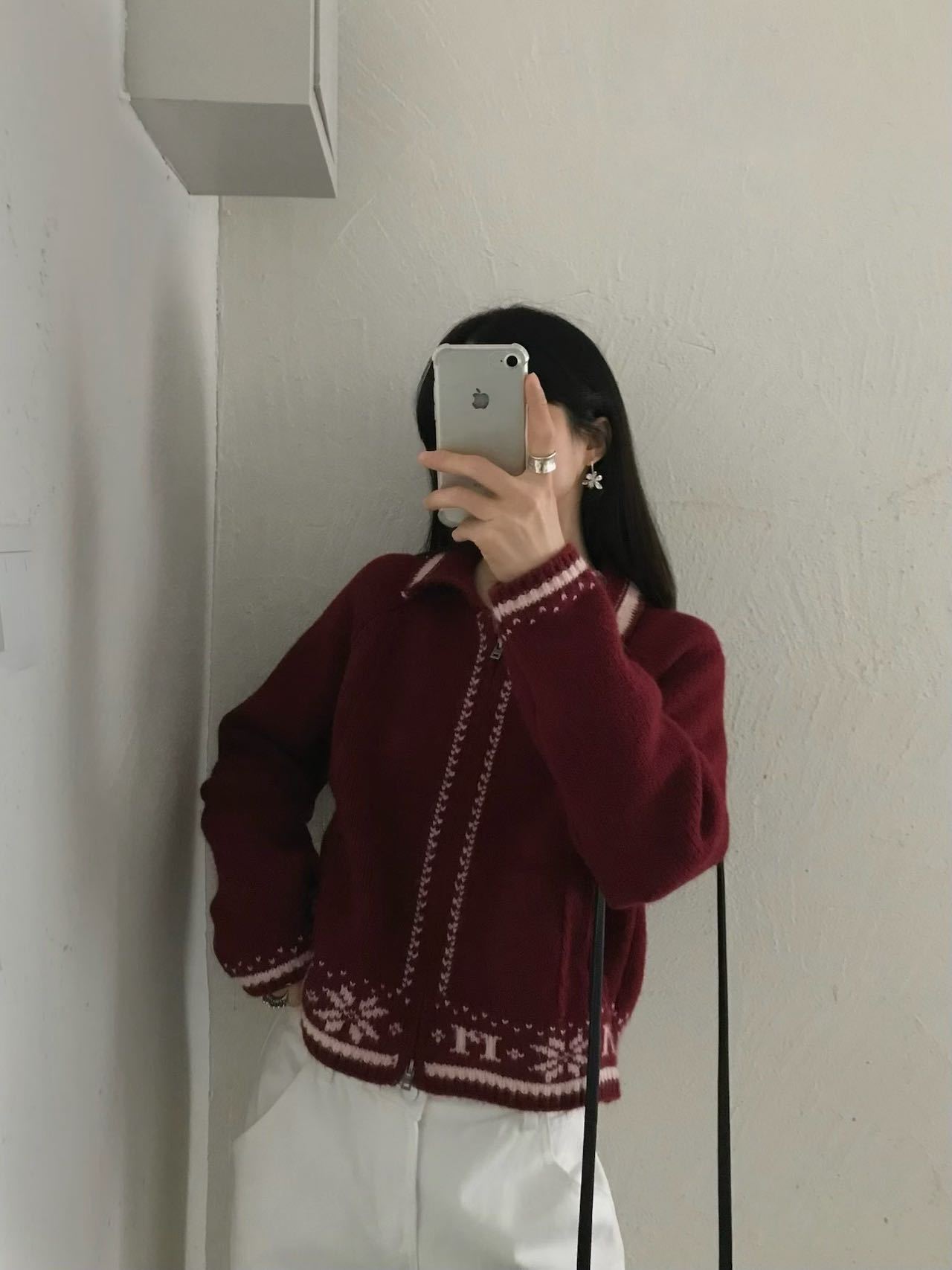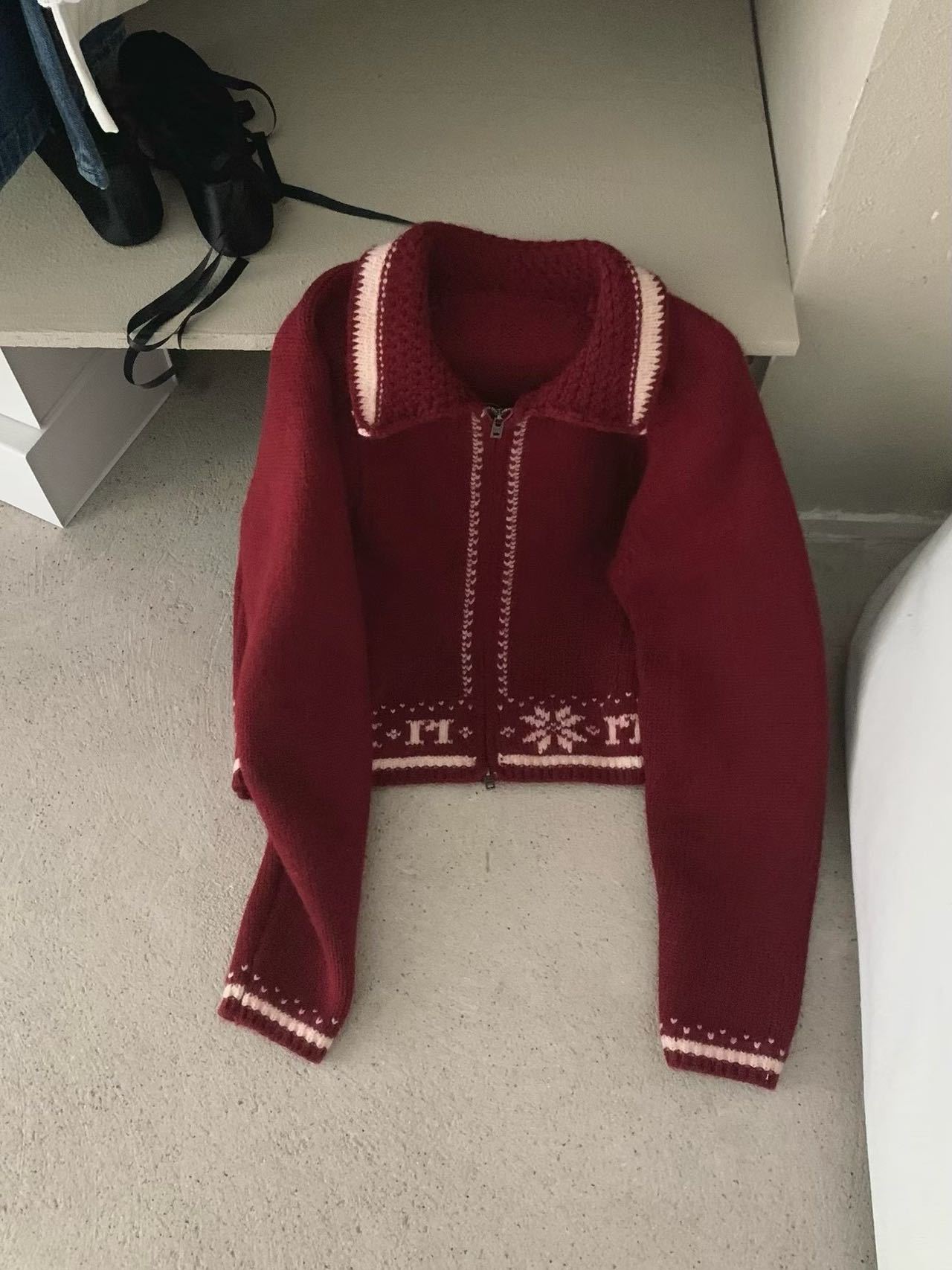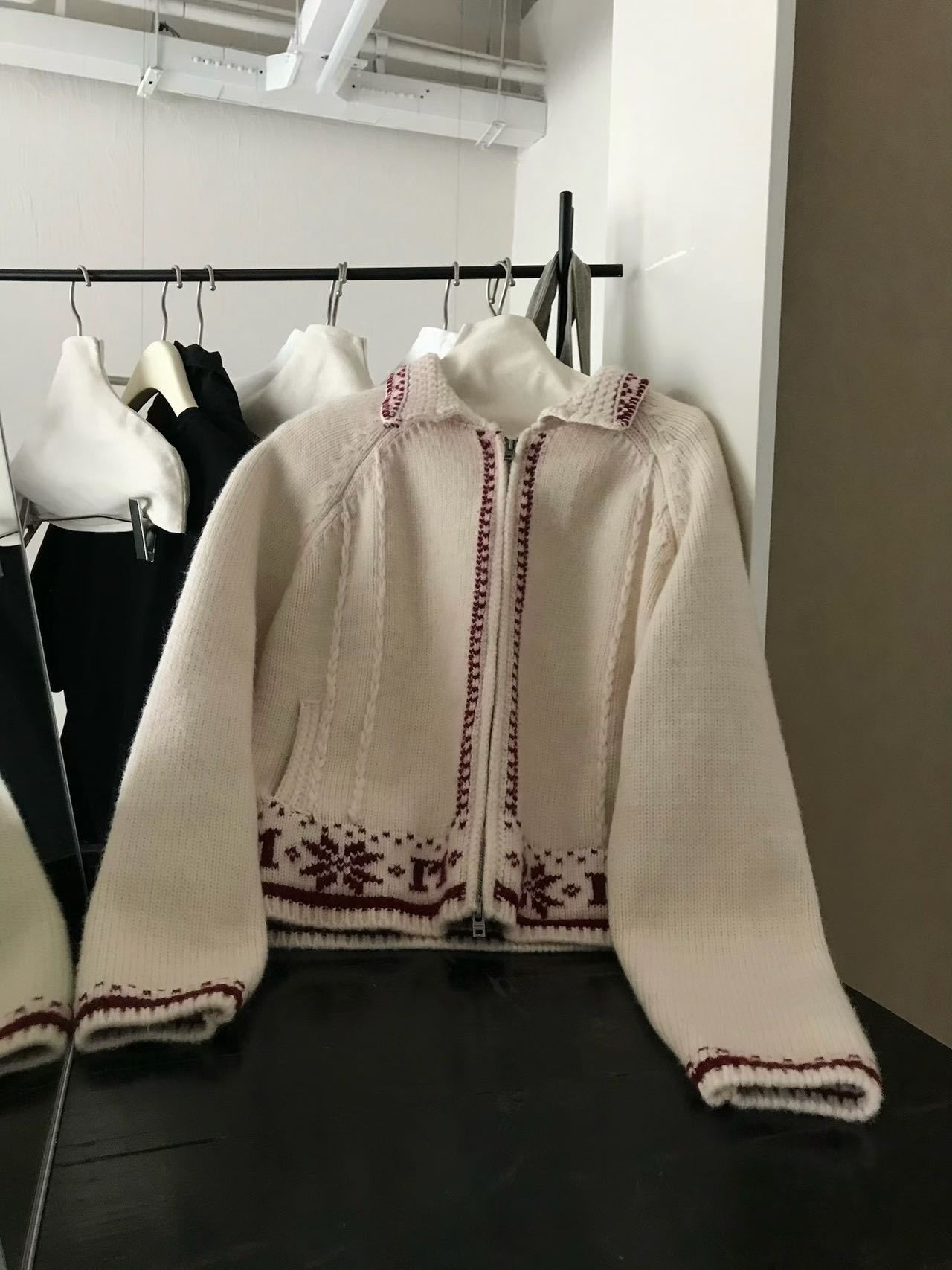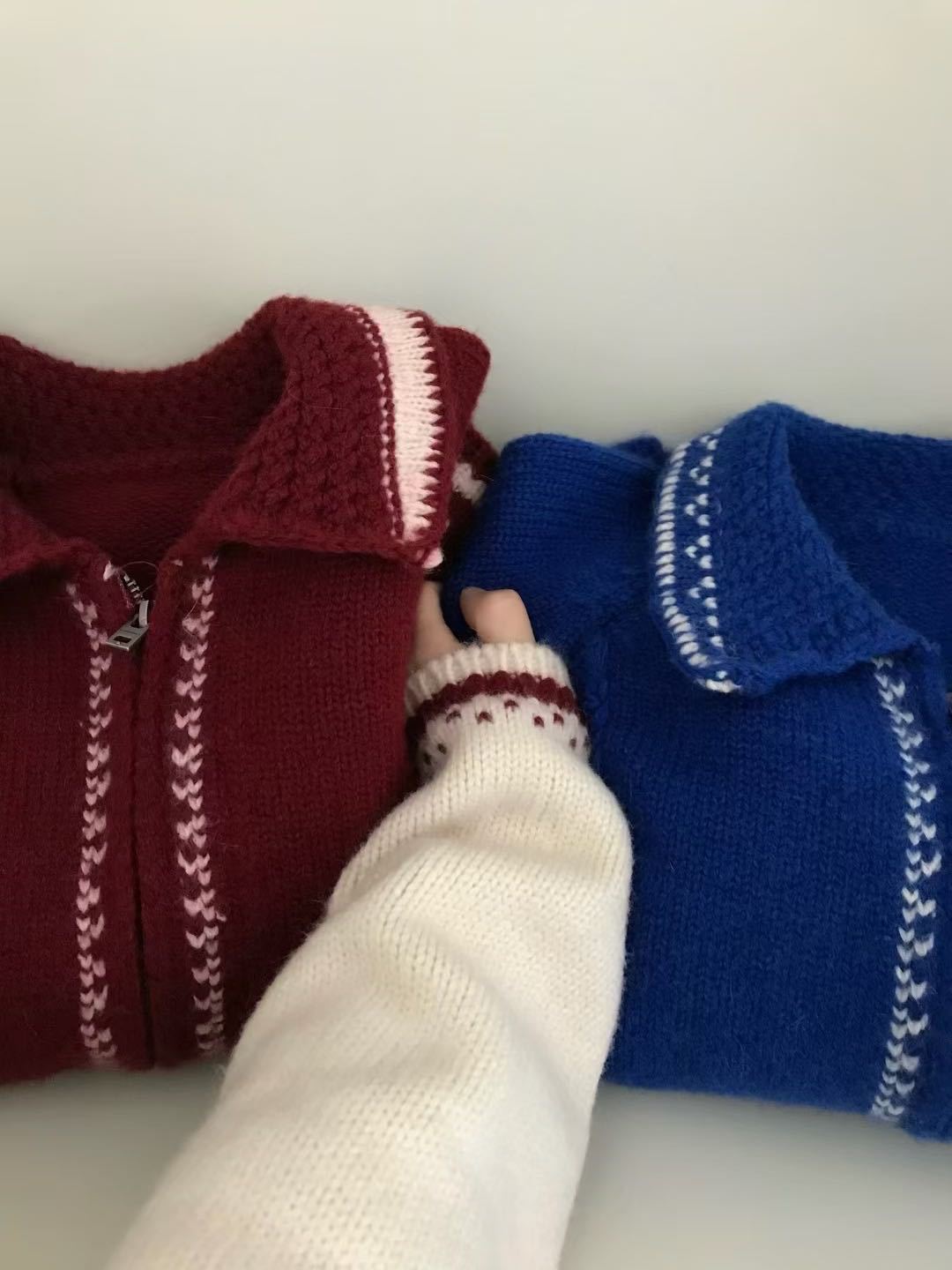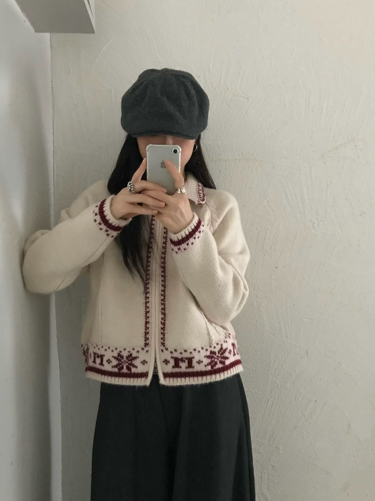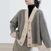 Casaco suéter jacquard retrô estilo coreano para mulheres 2025 outono/inverno novo top cardigã de tricô com lapela 1170