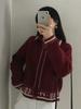 Beige Literary Jacquard Short Jacket, Red Literary Jacquard Short Jacket, Blue Literary Jacquard Short Jacket