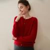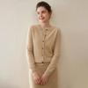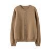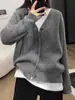 Cardigã Feminino de Caxemira 100% com Gola Redonda e Abotoamento Simples, Tricot, Roupa Externa Solta, Caxemira, Estilo Outono/Inverno, Suéter