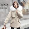 2024 Novo Outono e Inverno Quente Jaqueta de Algodão com Penas Estilo Curto Feminino Forrado com Lã Espessado Gola de Pele Grande Manga Longa Casaco de Algodão Jaqueta