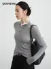 Outono e Inverno Novo Estilo Falso Duas Peças Gola Alta Suéter de Lã Manga Longa Top de Tricô Ajustado Tricô Feminino de Manga Longa