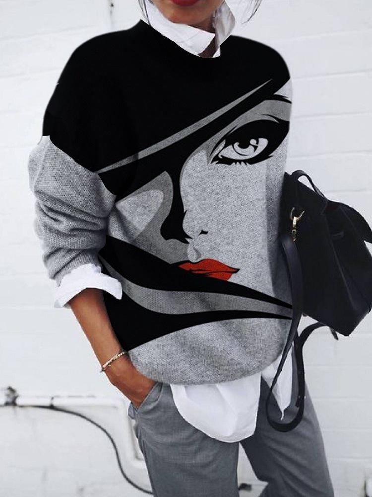 92 Europa e Estados Unidos transfronteiriços Amazon desejo comércio exterior moda feminina lixamento retrato estampado solto manga longa top