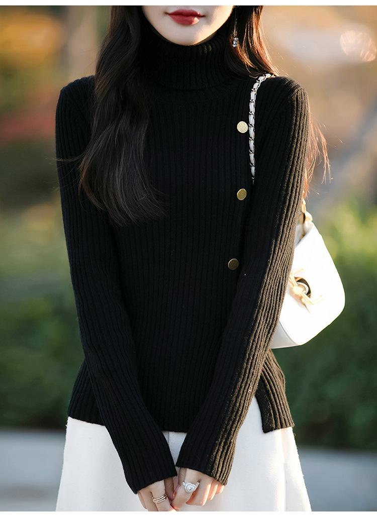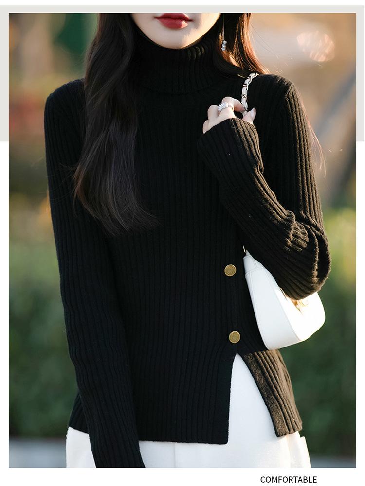 Outono e inverno 2024 nova camisa de malha de gola alta manga comprida cor sólida pulôver base camisa suéter com capuz para mulheres