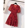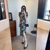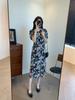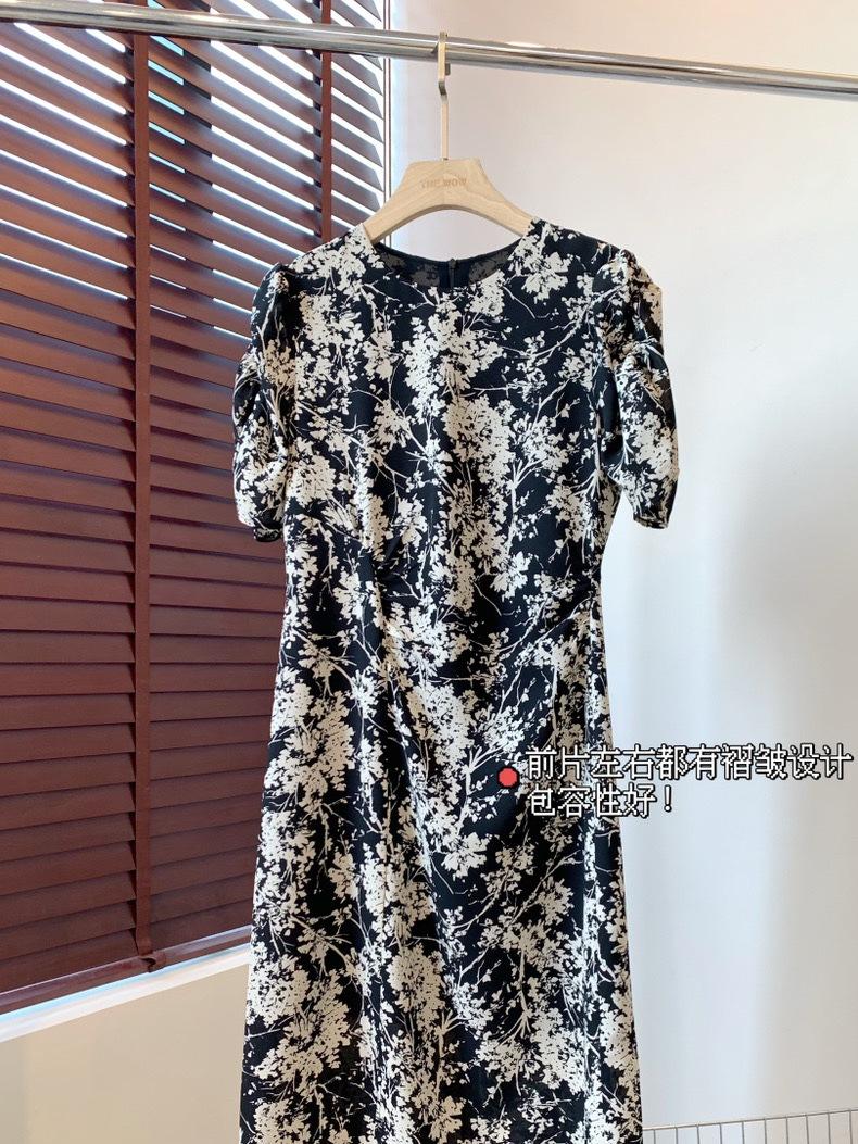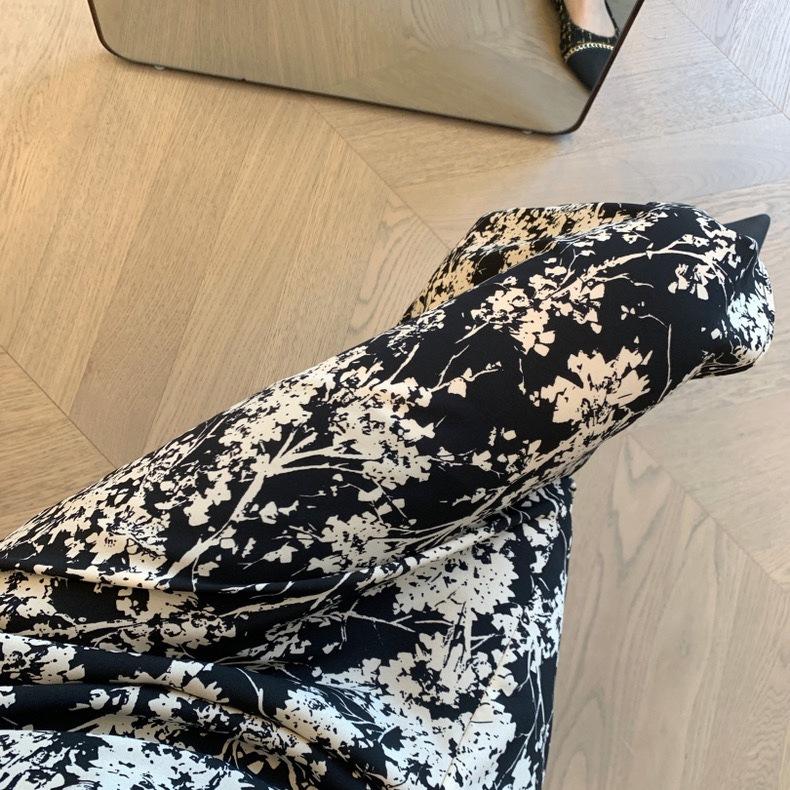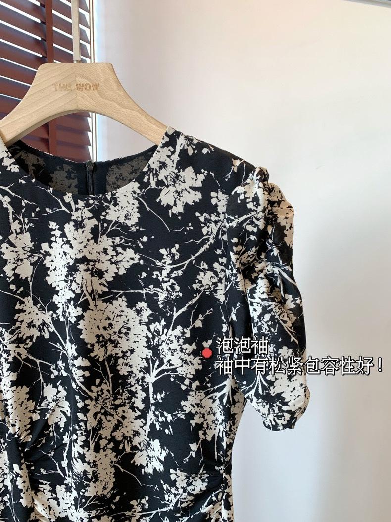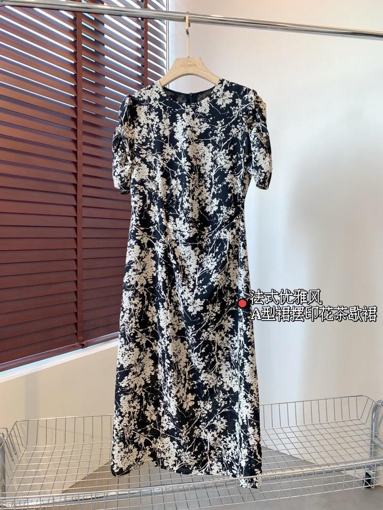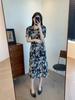 Elegante Francês, Leve e Respirável Flor Emagrecimento Look Manga Curta Fenda Vestido Elegante para Hora do Chá Verão