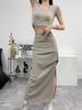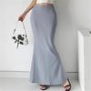 Verão Novo Retrô V-Cintura Plissada Saia Midi Rabo de Peixe Mulheres Puro Desejo Bodycon Justa ao Corpo Emagrecedora Elástica Longa Até o Chão
