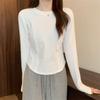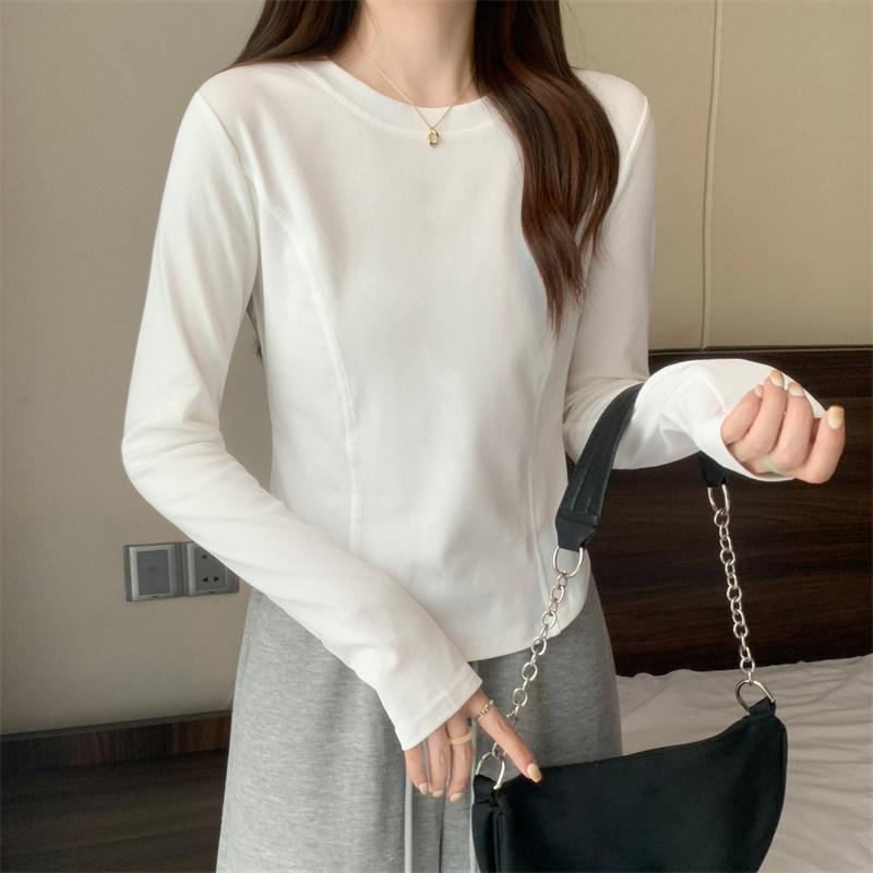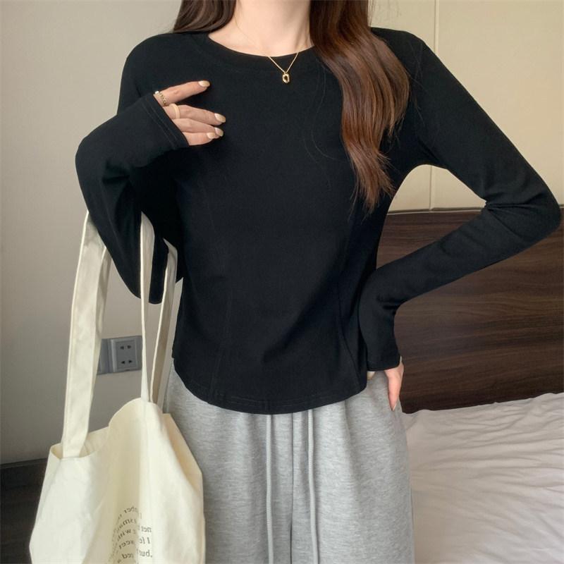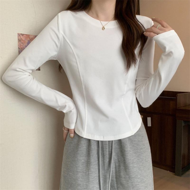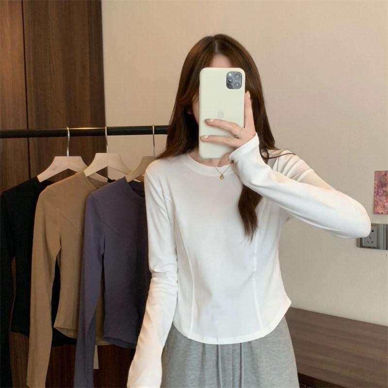 2025 Início do Outono Nova Camiseta Básica Slim-Fit para Mulheres, Camiseta Elegante de Manga Comprida para Estudantes, Top Curto da Moda