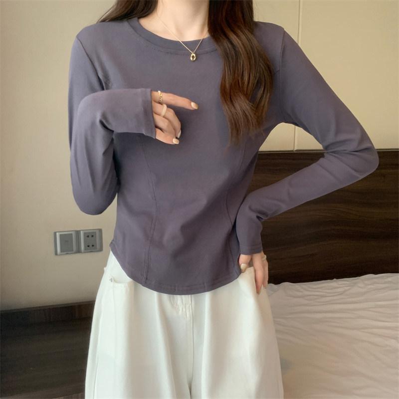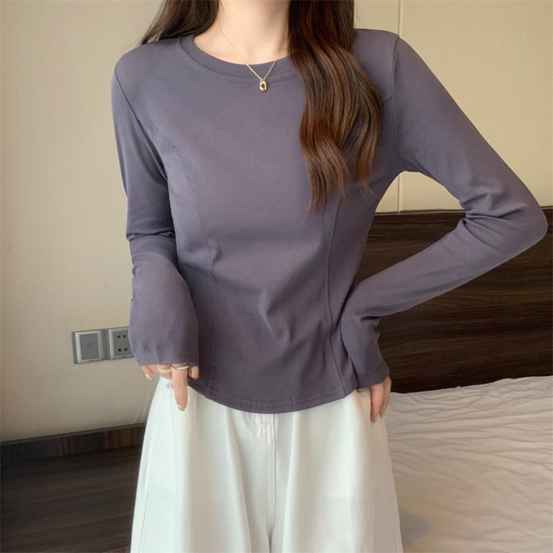 6809#2022 Novo Estilo Outono Antecipado Camiseta Básica Feminina Slim Sensação de Design Nicho Manga Longa Camiseta Top de Outono