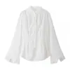 Outono 2025 Nova Roupa Feminina Estilo Europeu e Americano Moda Decoração de Laço Camisa Semitransparente 8615737