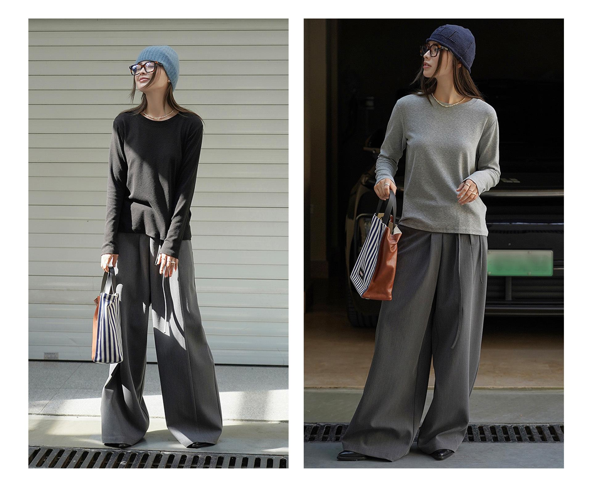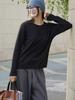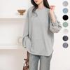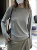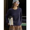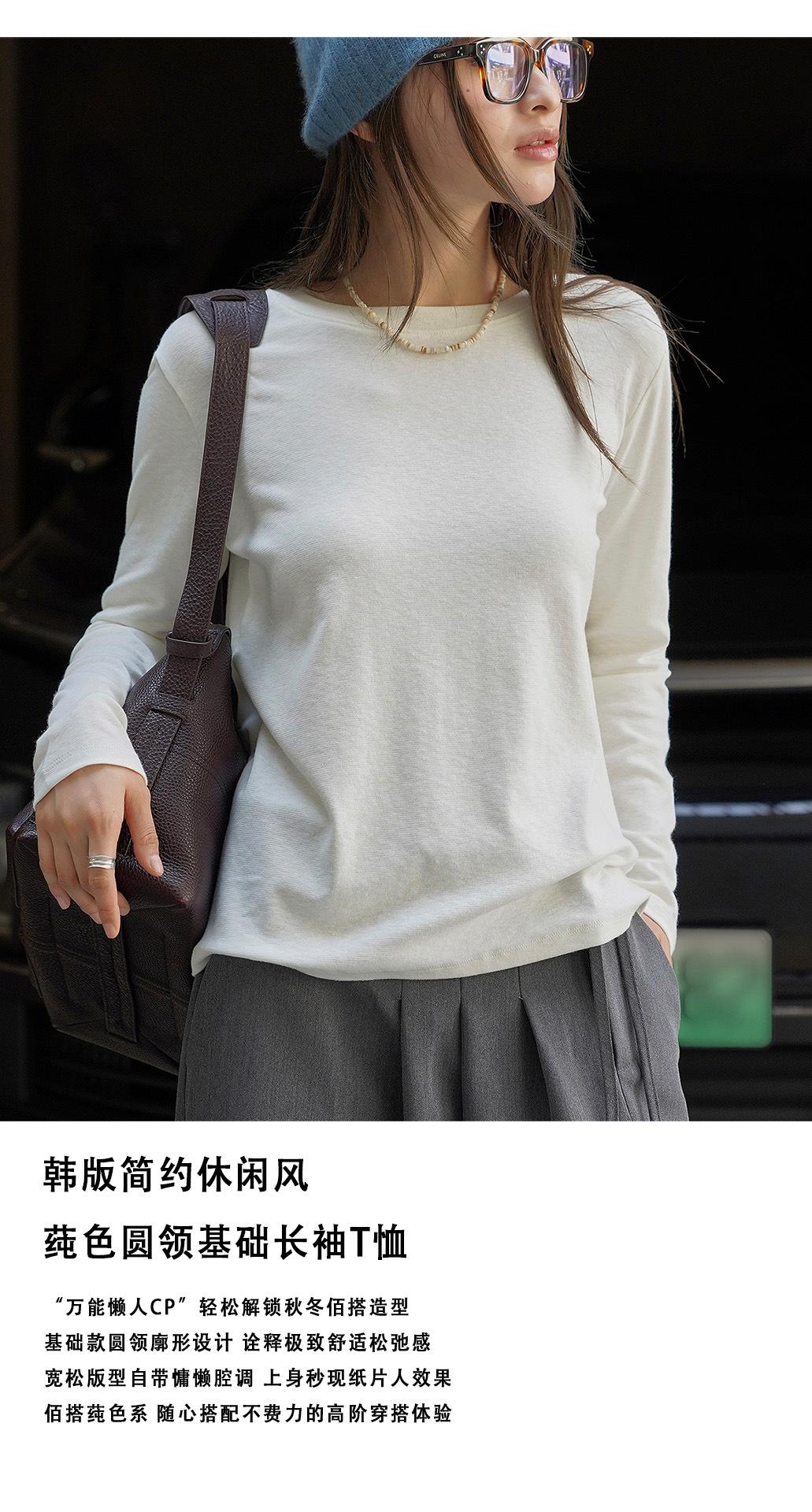 Louvre início de outono novo estilo coreano casual cor pura gola redonda manga comprida camiseta simples básica top confortável mulheres