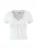 Camiseta de Renda Estilo Pure Lust Decote V Laço Manga Curta Verão Nova Versátil Slim Curta Sexy Top para Mulheres