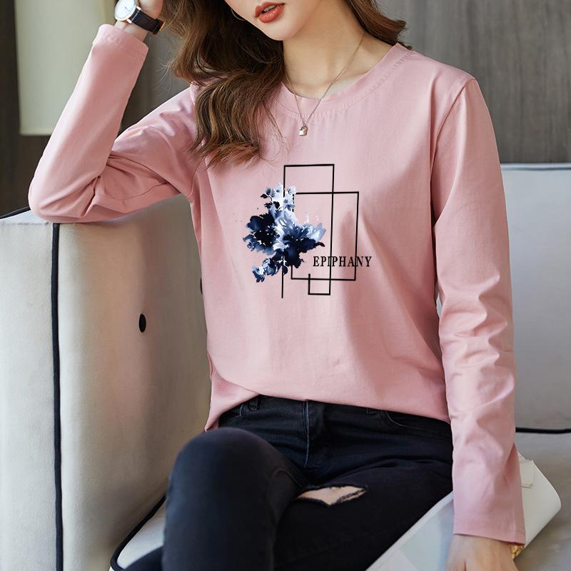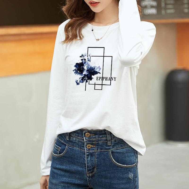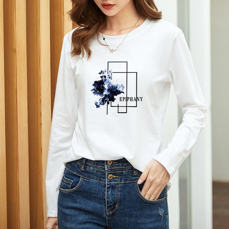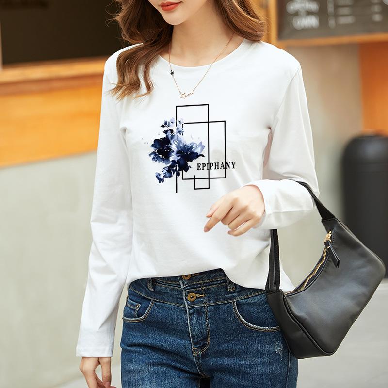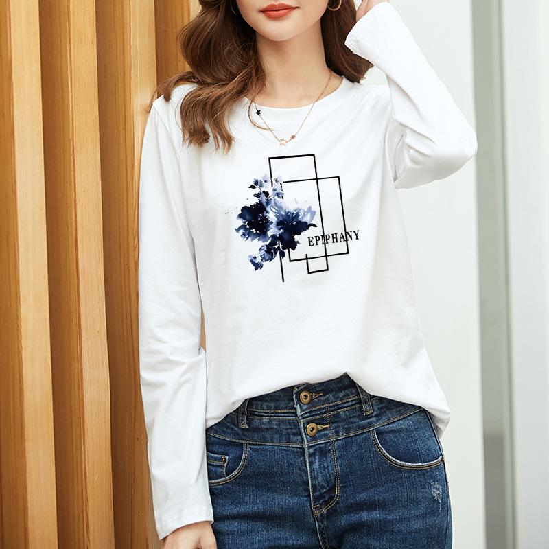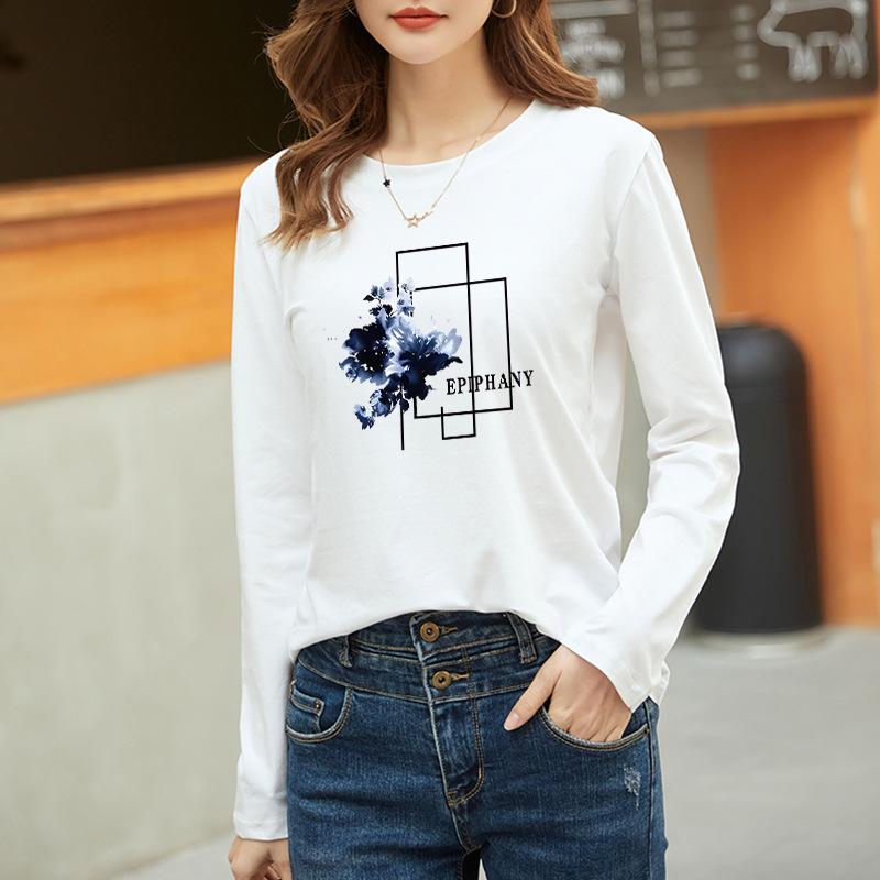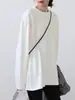 Camiseta Feminina de Algodão Puro Branco Manga Longa 2025 Novo Design Nicho Primavera Outono Versátil Fina Solta Camiseta Básica Tendência