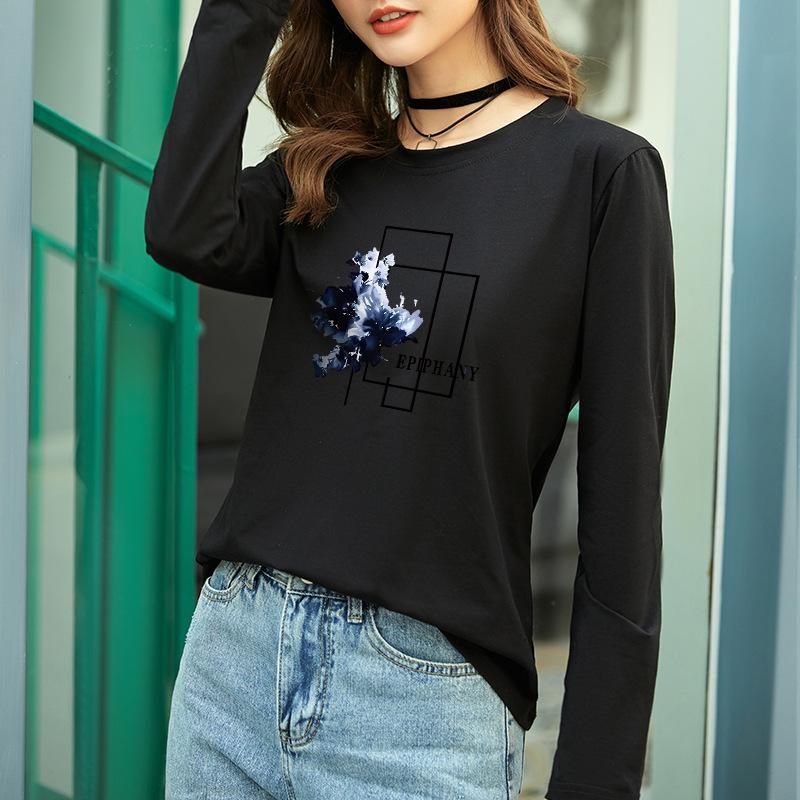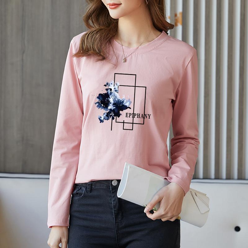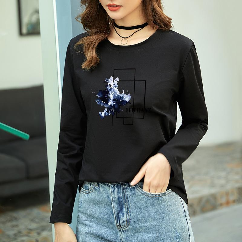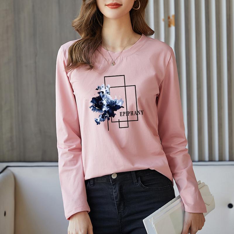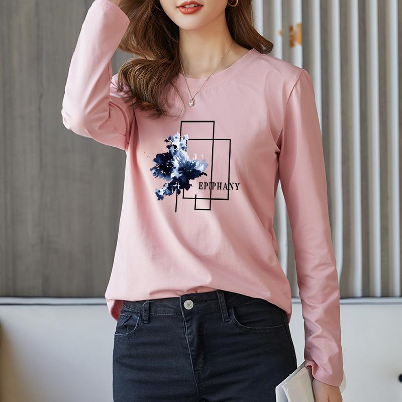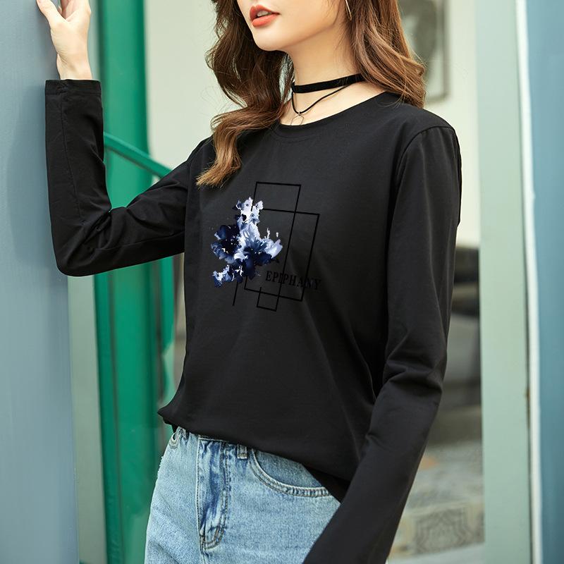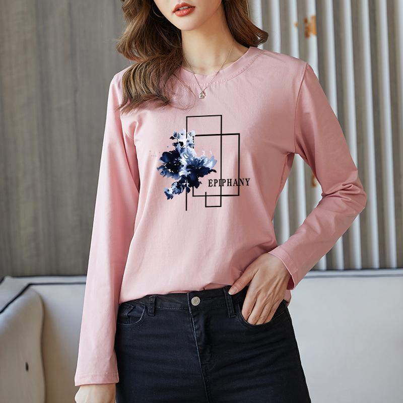 Camiseta Feminina de Algodão Puro Branco Manga Longa 2025 Novo Design Nicho Primavera Outono Versátil Fina Solta Camiseta Básica Tendência